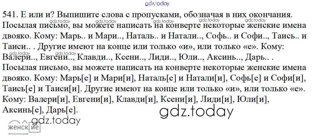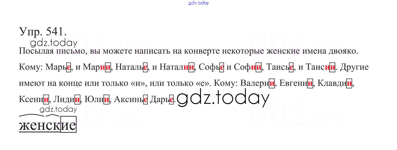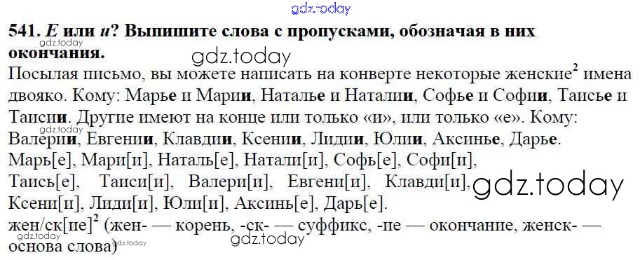 Ответы к Часть 2. Решение к упражнениям 541 Учебнику по Русскому языку для 5 класса Баранов, Ладыженская Просвещение, Просвещение 2016, 2019