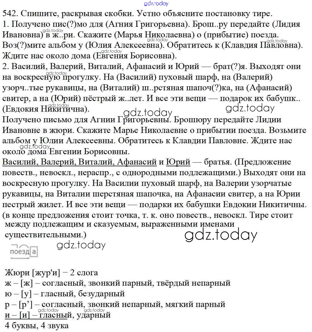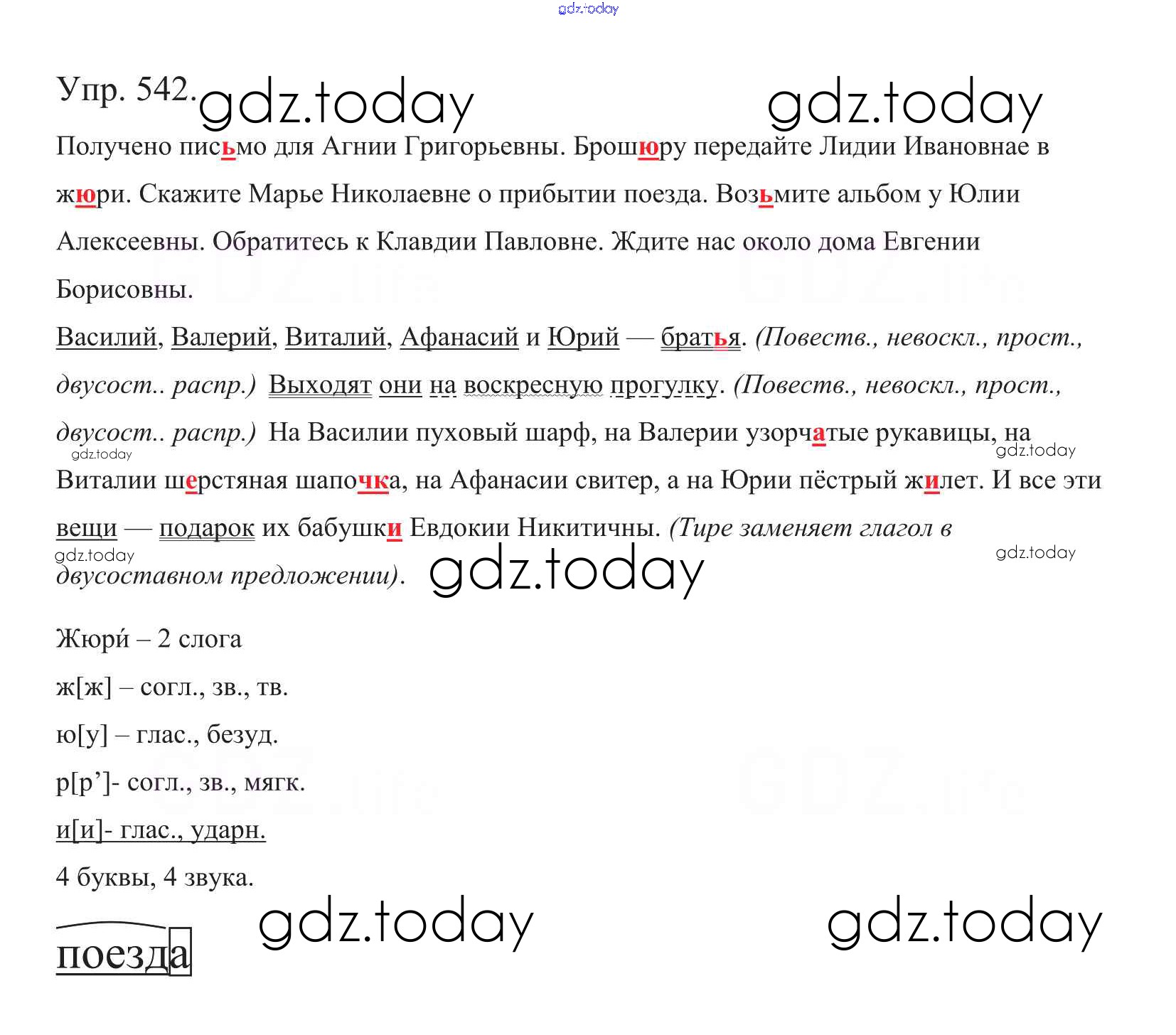 Ответы к Часть 2. Решение к упражнениям 542 Учебнику по Русскому языку для 5 класса Баранов, Ладыженская Просвещение, Просвещение 2016, 2019