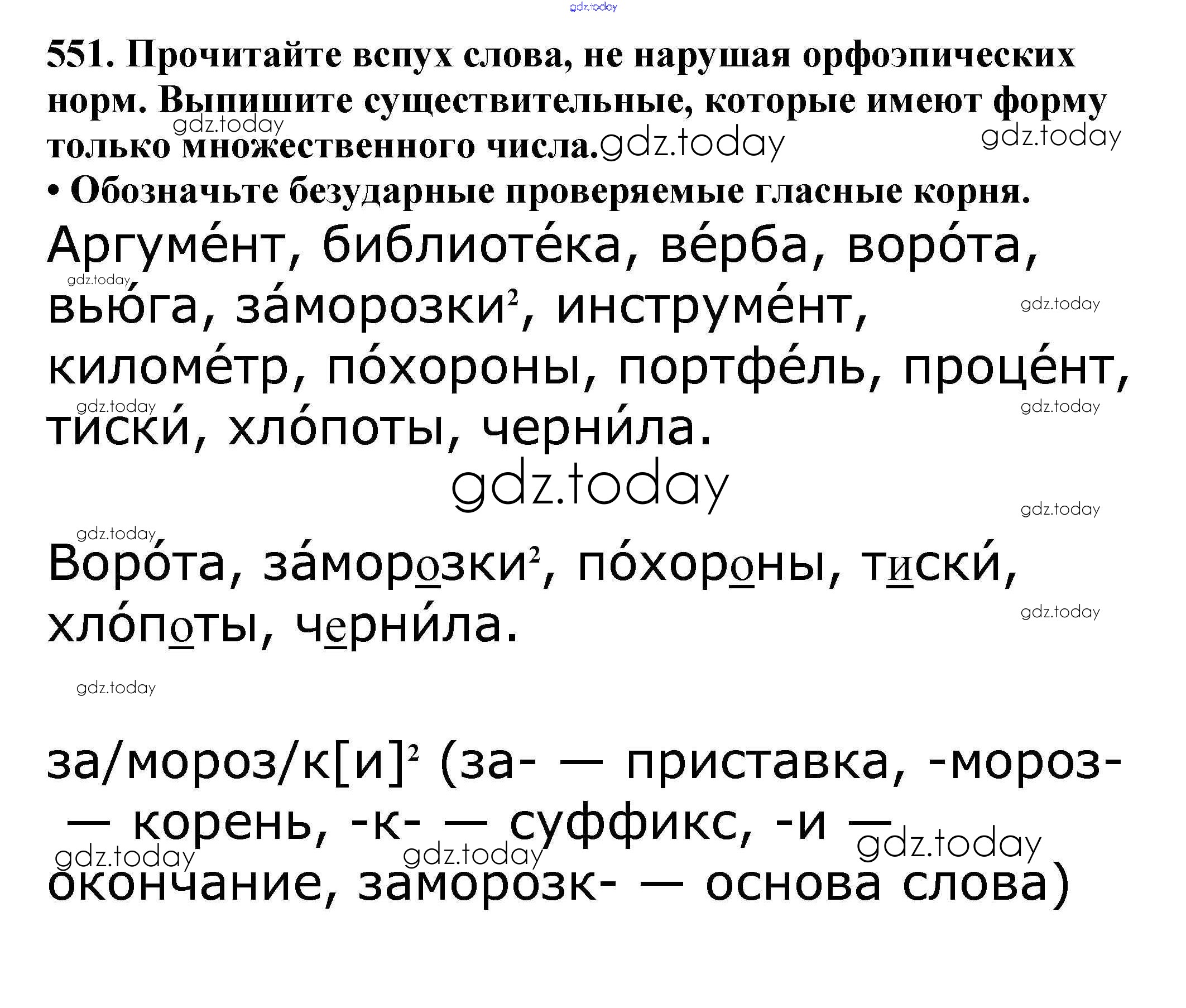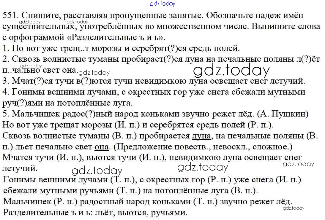 Ответы к Часть 2. Решение к упражнениям 551 Учебнику по Русскому языку для 5 класса Баранов, Ладыженская Просвещение, Просвещение 2016, 2019
