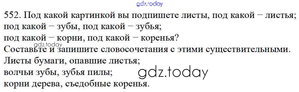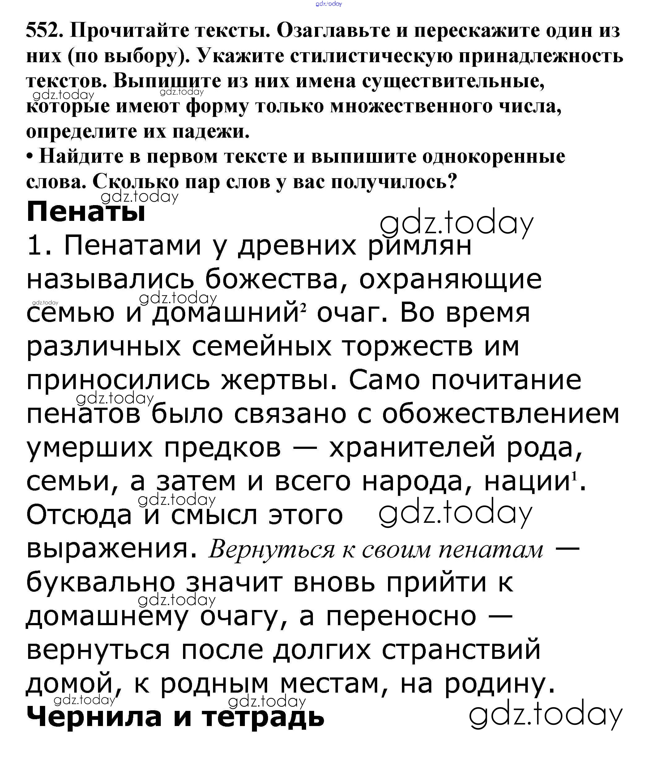 Ответы к Часть 2. Решение к упражнениям 552 Учебнику по Русскому языку для 5 класса Баранов, Ладыженская Просвещение, Просвещение 2016, 2019
