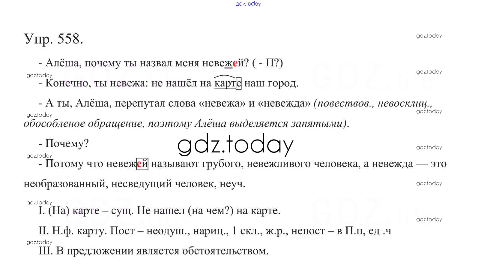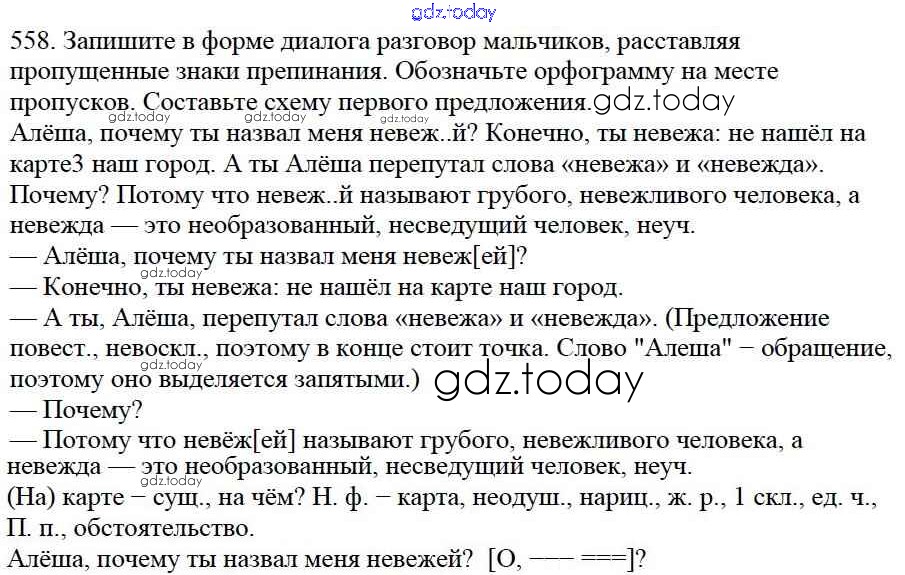 На страницах сайта gdz.today вы найдете учебный и вспомогательный материал, направленный на улучшения знаний школьной программы. ГДЗ - онлайн мир знаний Часть 2. Решение к упражнениям 558 Учебнику по Русскому языку для 5 класса Баранов, Ладыженская Просвещение, Просвещение 2016, 2019