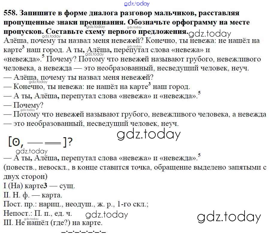 Ответы к Часть 2. Решение к упражнениям 558 Учебнику по Русскому языку для 5 класса Баранов, Ладыженская Просвещение, Просвещение 2016, 2019
