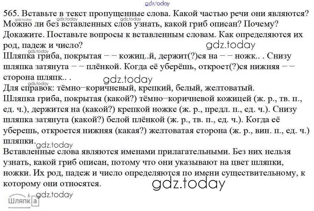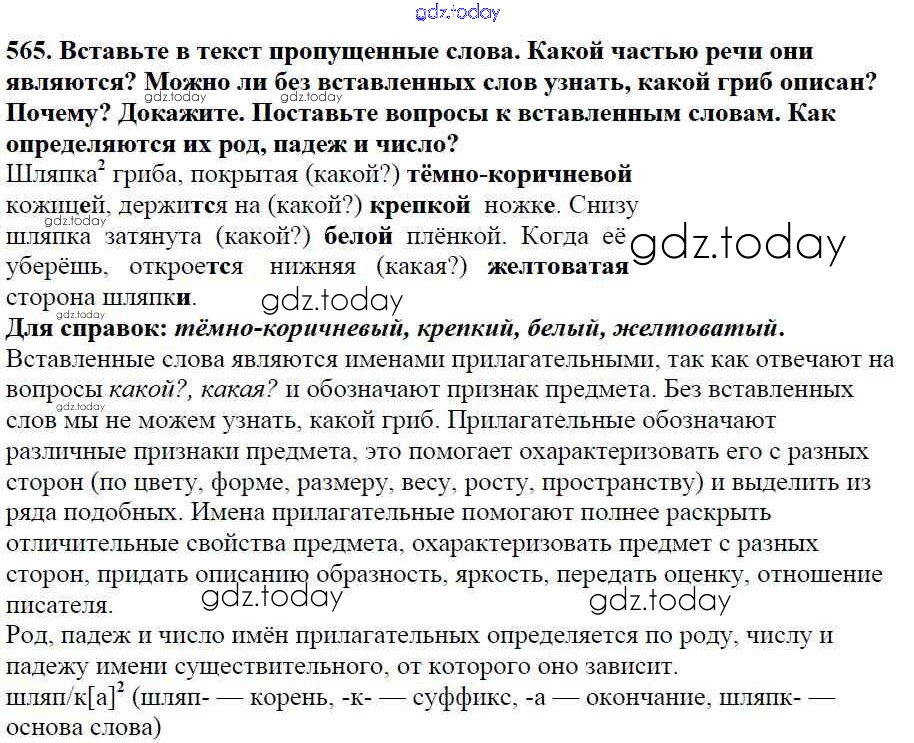 Ответы к Часть 2. Решение к упражнениям 565 Учебнику по Русскому языку для 5 класса Баранов, Ладыженская Просвещение, Просвещение 2016, 2019