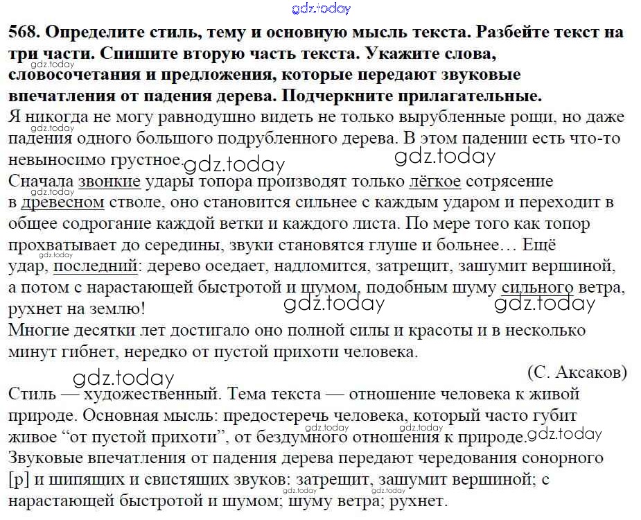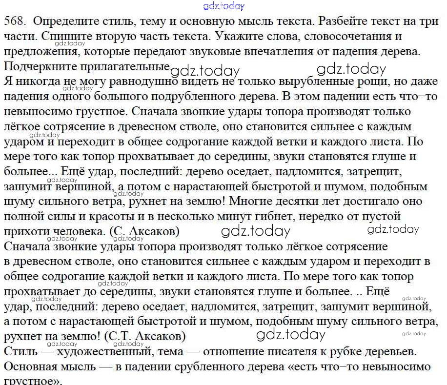 Ответы к Часть 2. Решение к упражнениям 568 Учебнику по Русскому языку для 5 класса Баранов, Ладыженская Просвещение, Просвещение 2016, 2019