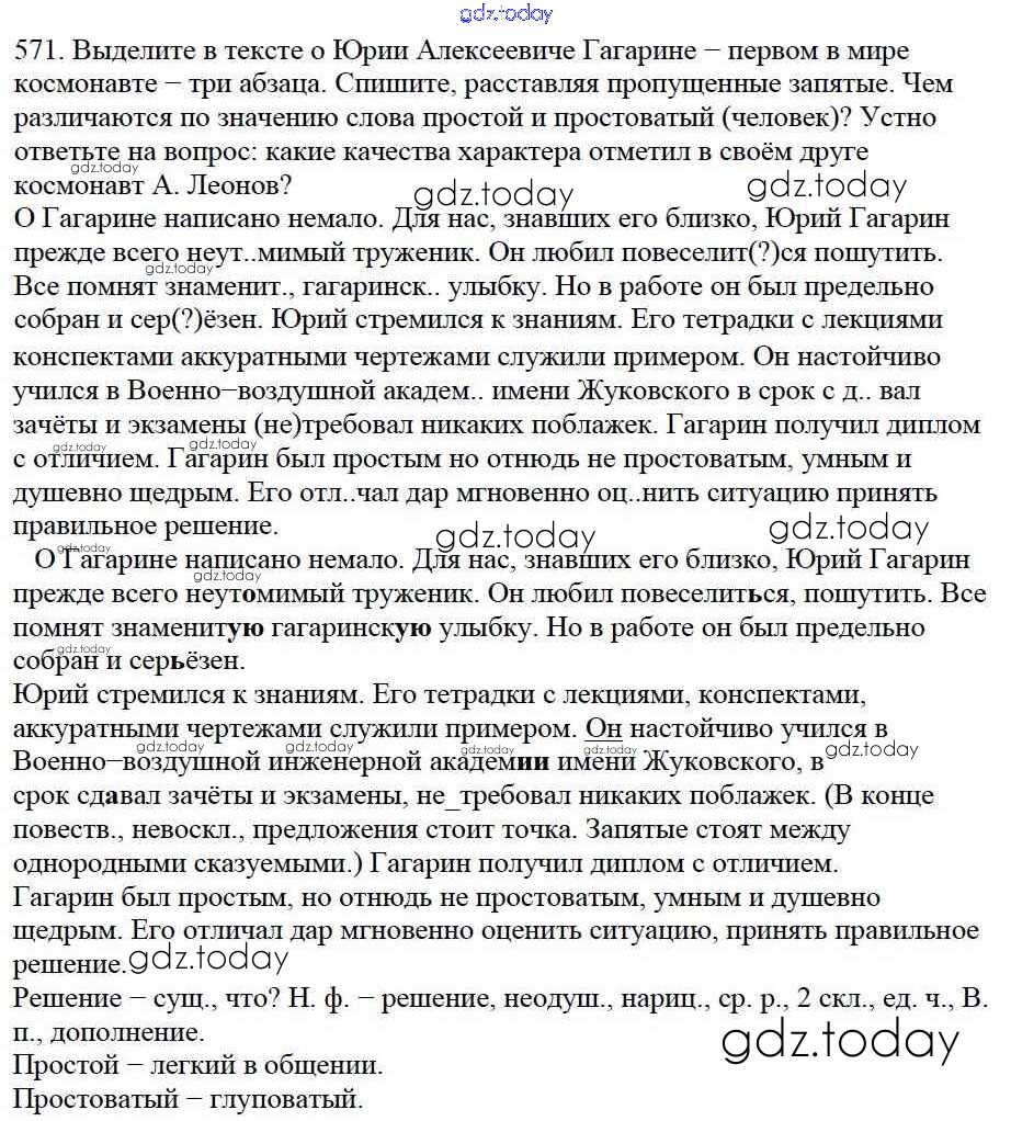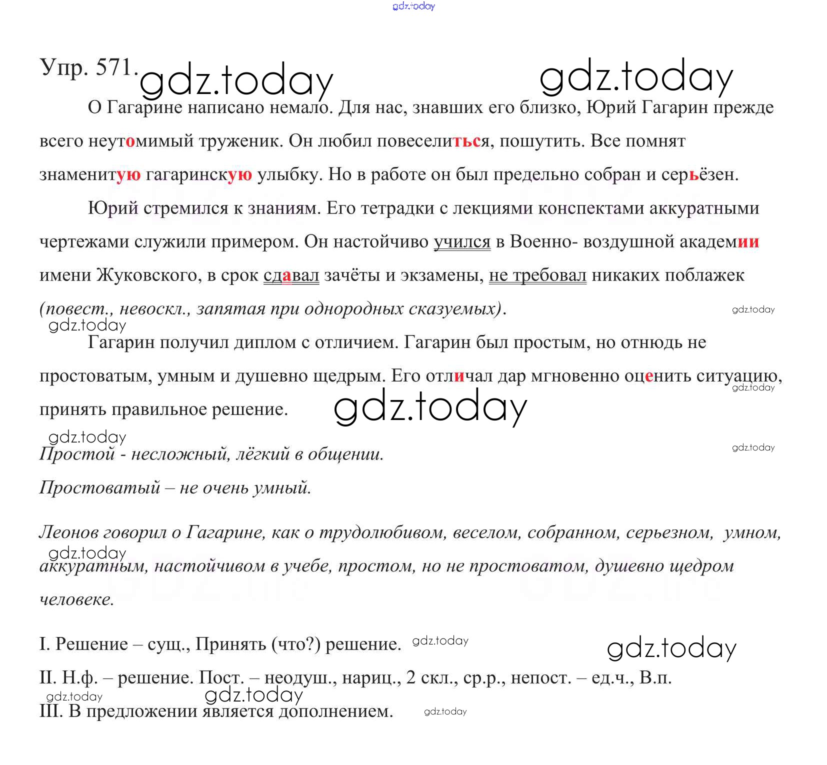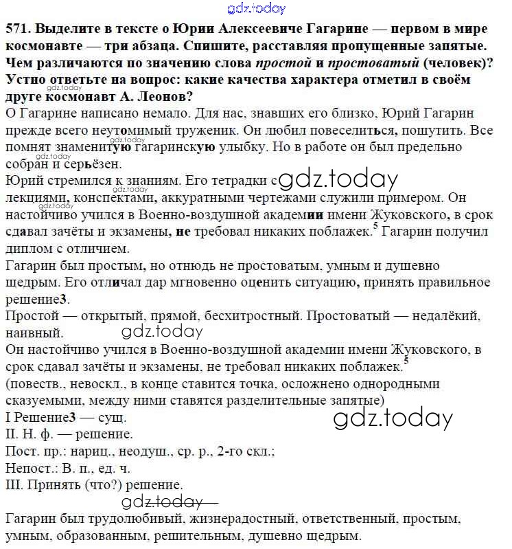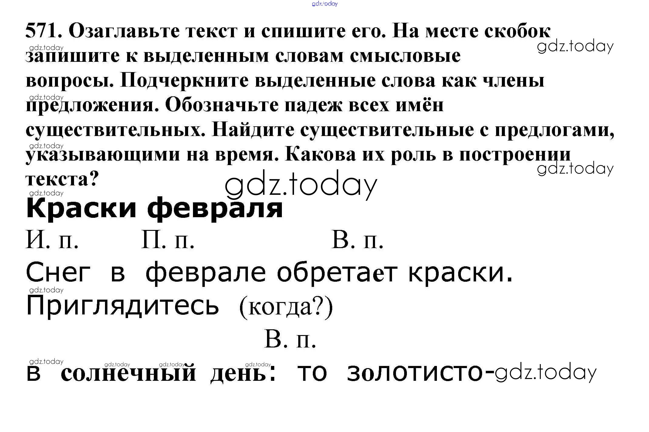 Ответы к Часть 2. Решение к упражнениям 571 Учебнику по Русскому языку для 5 класса Баранов, Ладыженская Просвещение, Просвещение 2016, 2019