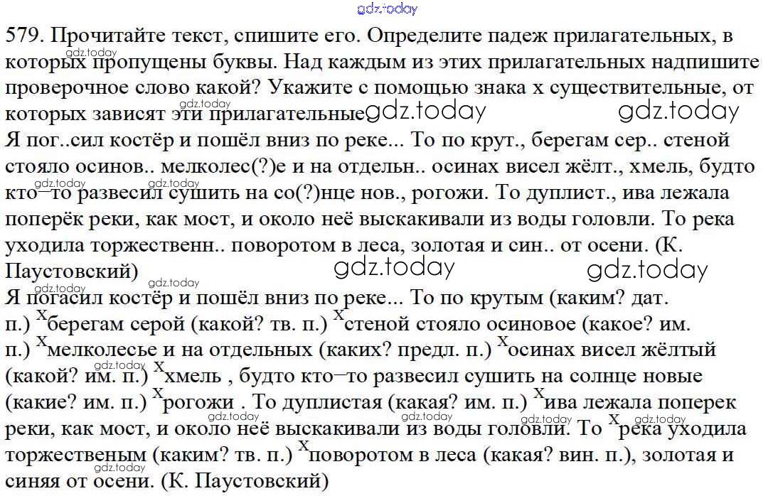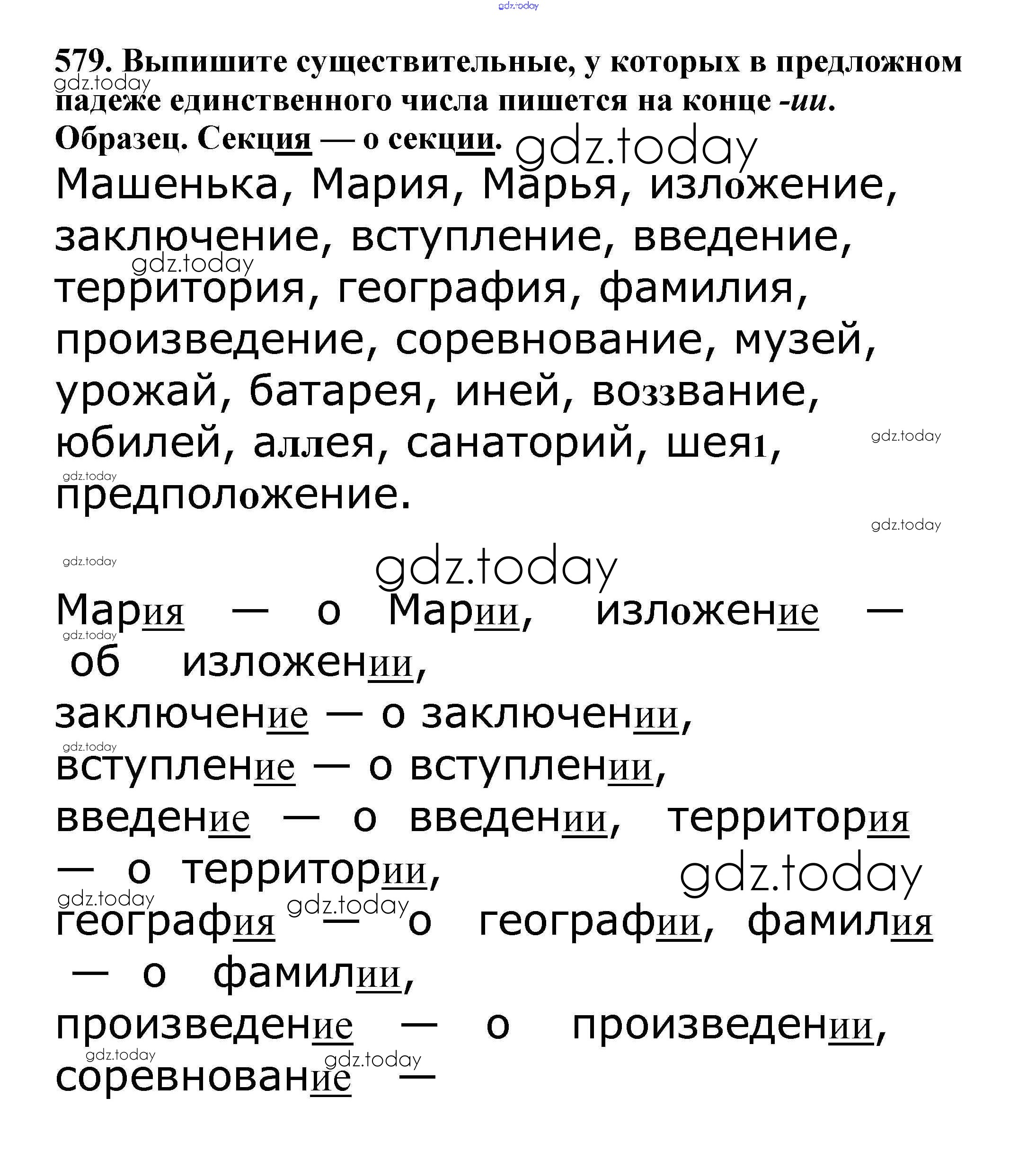 Ответы к Часть 2. Решение к упражнениям 579 Учебнику по Русскому языку для 5 класса Баранов, Ладыженская Просвещение, Просвещение 2016, 2019