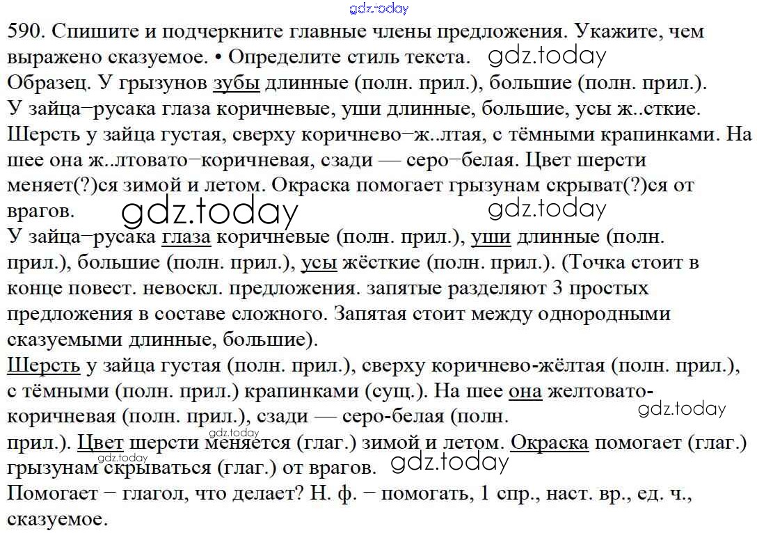 Ответы к Часть 2. Решение к упражнениям 590 Учебнику по Русскому языку для 5 класса Баранов, Ладыженская Просвещение, Просвещение 2016, 2019