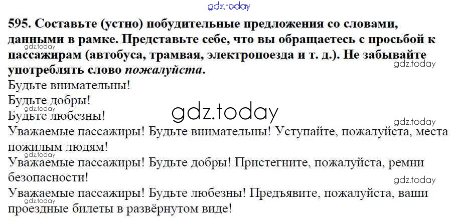 Ответы к Часть 2. Решение к упражнениям 595 Учебнику по Русскому языку для 5 класса Баранов, Ладыженская Просвещение, Просвещение 2016, 2019