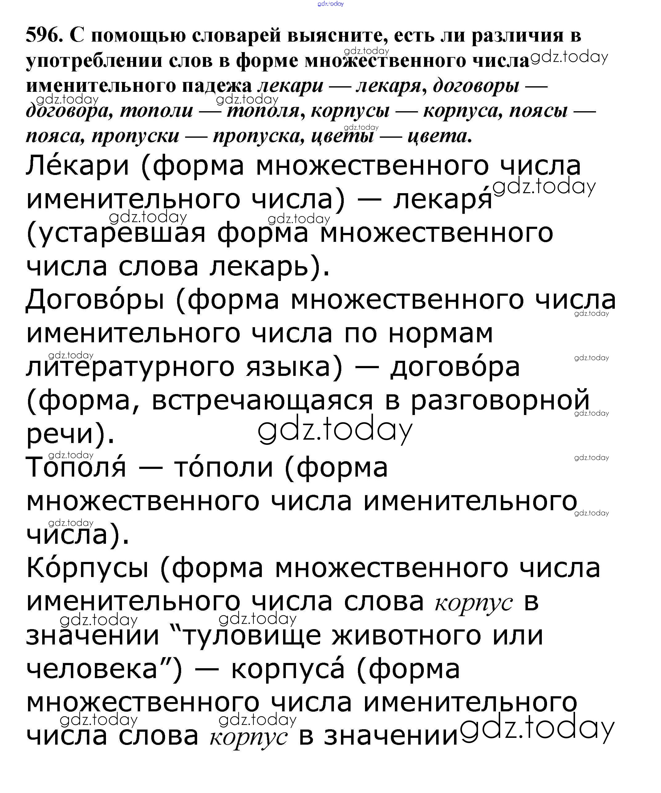 Ответы к Часть 2. Решение к упражнениям 596 Учебнику по Русскому языку для 5 класса Баранов, Ладыженская Просвещение, Просвещение 2016, 2019