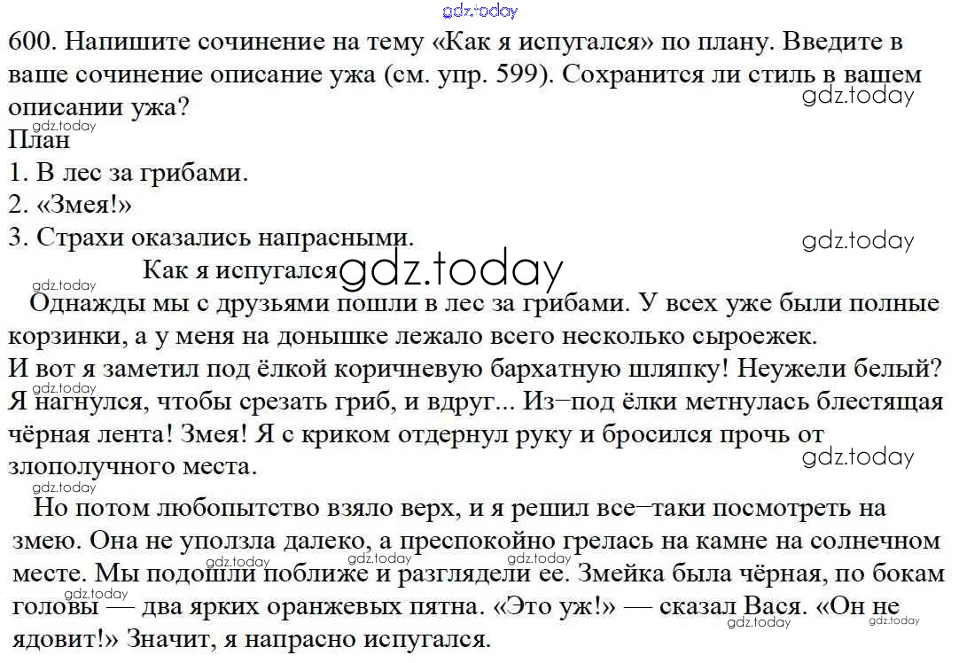 На страницах сайта gdz.today вы найдете учебный и вспомогательный материал, направленный на улучшения знаний школьной программы. ГДЗ - онлайн мир знаний Часть 2. Решение к упражнениям 600 Учебнику по Русскому языку для 5 класса Баранов, Ладыженская Просвещение, Просвещение 2016, 2019