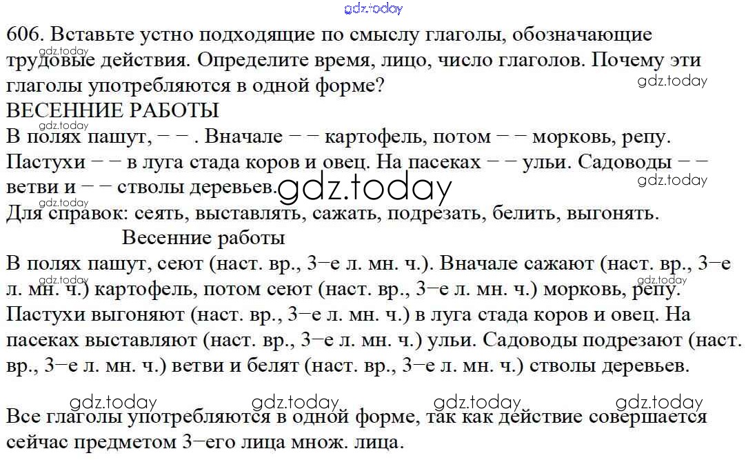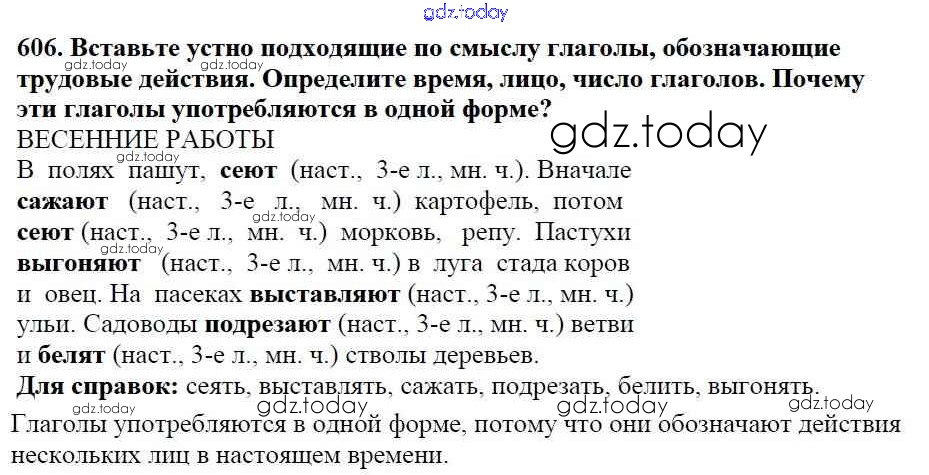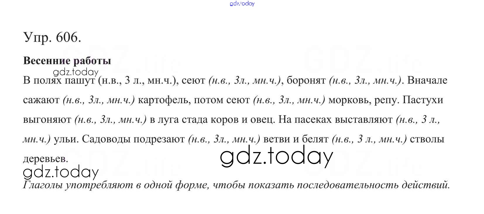 На страницах сайта gdz.today вы найдете учебный и вспомогательный материал, направленный на улучшения знаний школьной программы. ГДЗ - онлайн мир знаний Часть 2. Решение к упражнениям 606 Учебнику по Русскому языку для 5 класса Баранов, Ладыженская Просвещение, Просвещение 2016, 2019