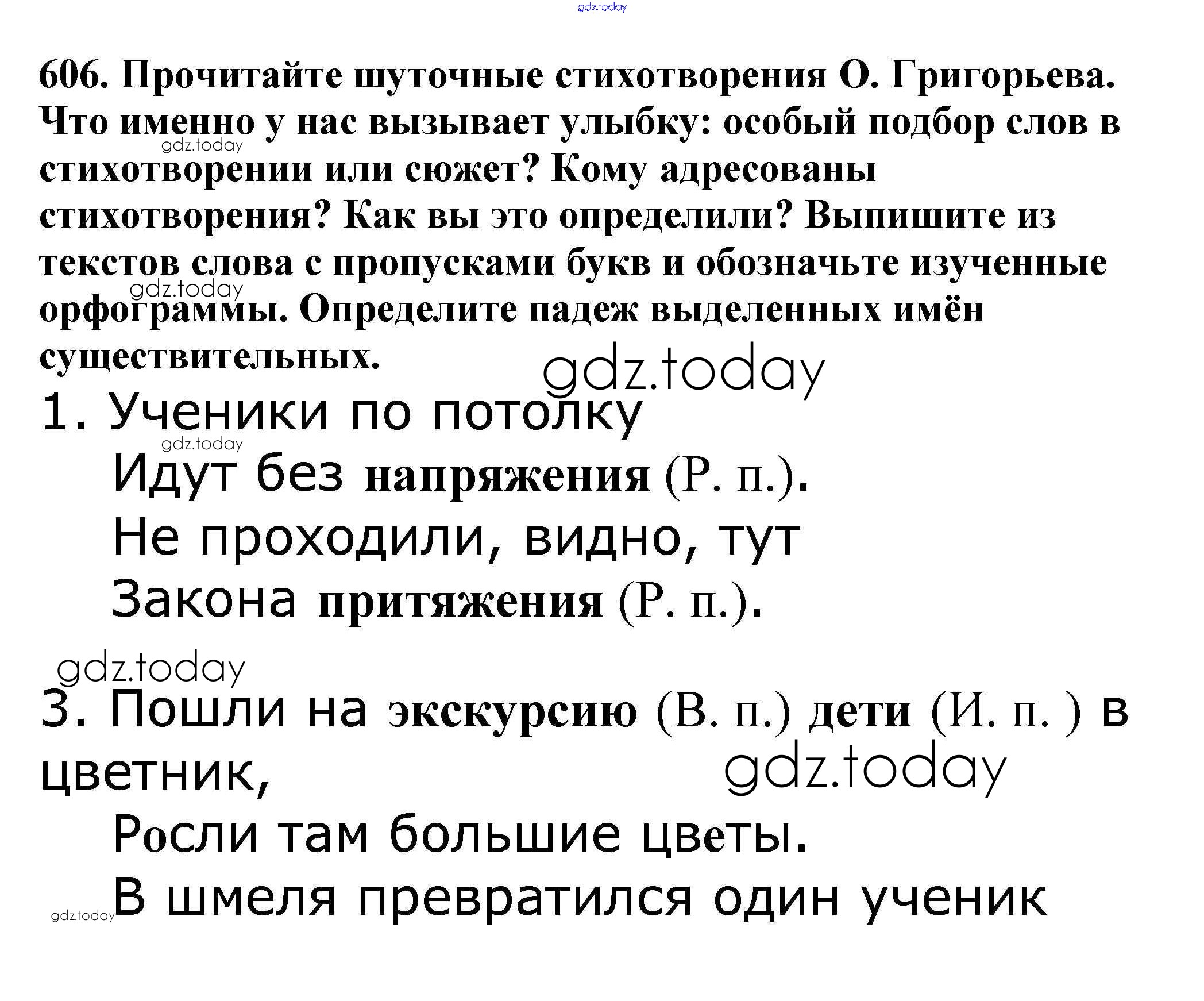 Ответы к Часть 2. Решение к упражнениям 606 Учебнику по Русскому языку для 5 класса Баранов, Ладыженская Просвещение, Просвещение 2016, 2019