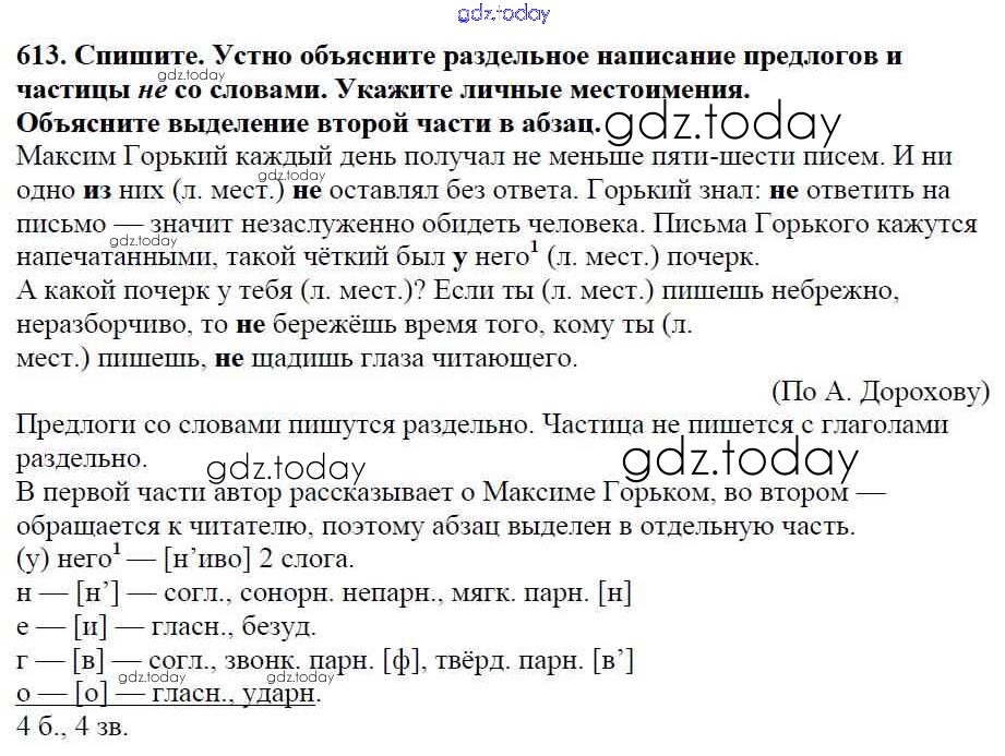 На страницах сайта gdz.today вы найдете учебный и вспомогательный материал, направленный на улучшения знаний школьной программы. ГДЗ - онлайн мир знаний Часть 2. Решение к упражнениям 613 Учебнику по Русскому языку для 5 класса Баранов, Ладыженская Просвещение, Просвещение 2016, 2019