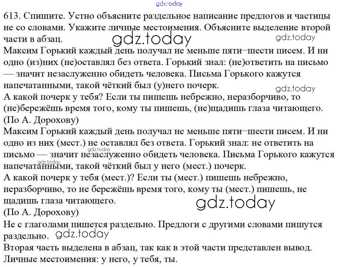 Ответы к Часть 2. Решение к упражнениям 613 Учебнику по Русскому языку для 5 класса Баранов, Ладыженская Просвещение, Просвещение 2016, 2019