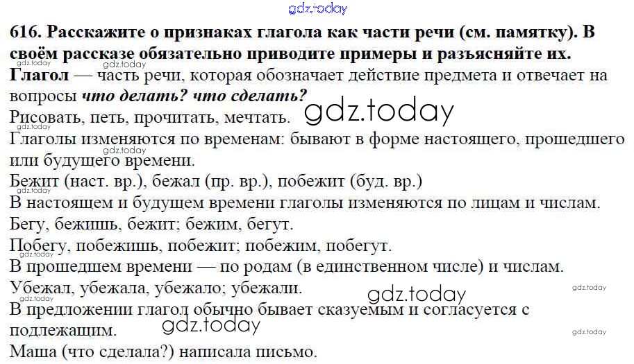 На страницах сайта gdz.today вы найдете учебный и вспомогательный материал, направленный на улучшения знаний школьной программы. ГДЗ - онлайн мир знаний Часть 2. Решение к упражнениям 616 Учебнику по Русскому языку для 5 класса Баранов, Ладыженская Просвещение, Просвещение 2016, 2019