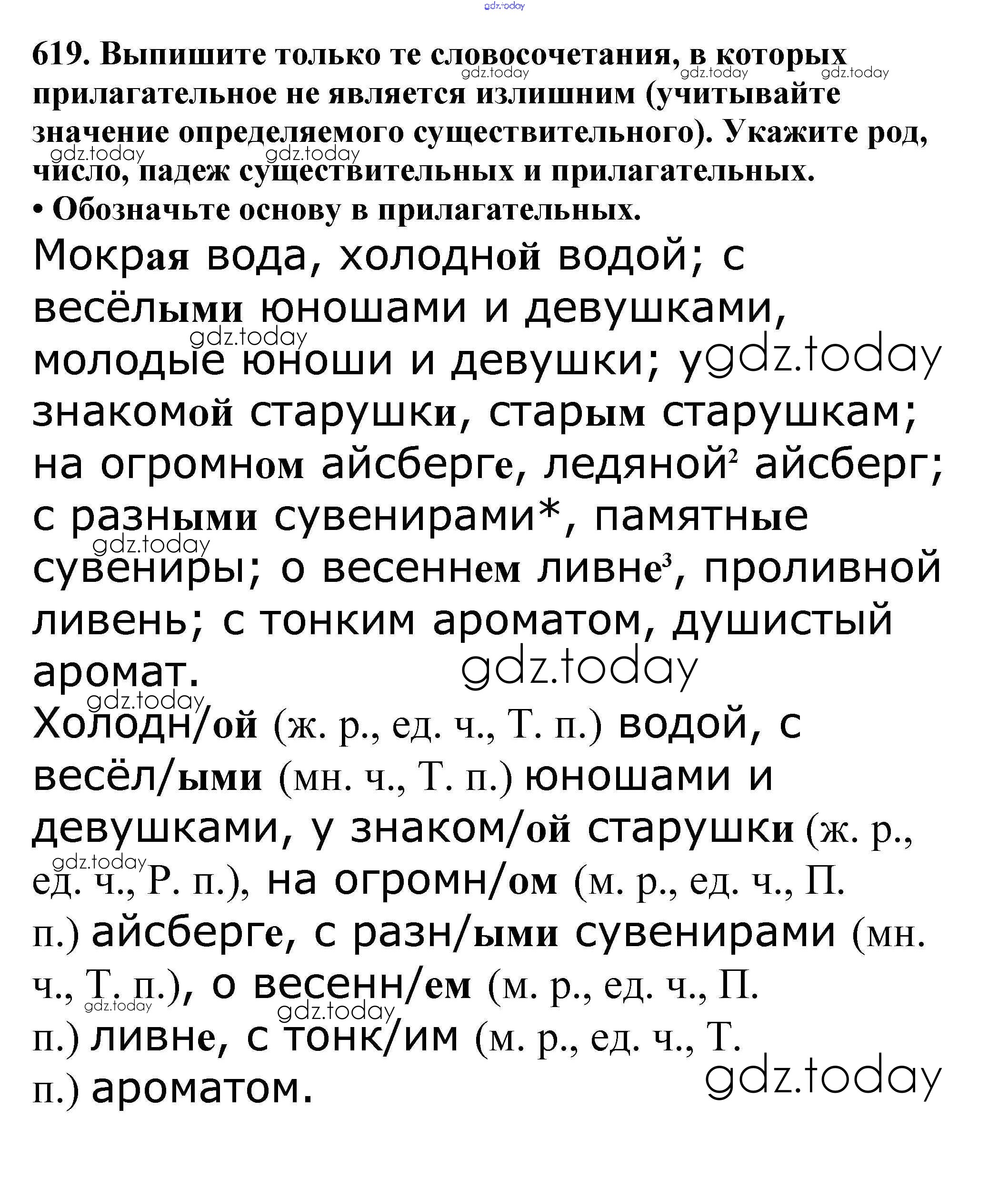 Ответы к Часть 2. Решение к упражнениям 619 Учебнику по Русскому языку для 5 класса Баранов, Ладыженская Просвещение, Просвещение 2016, 2019