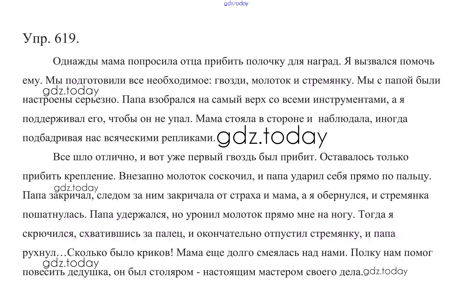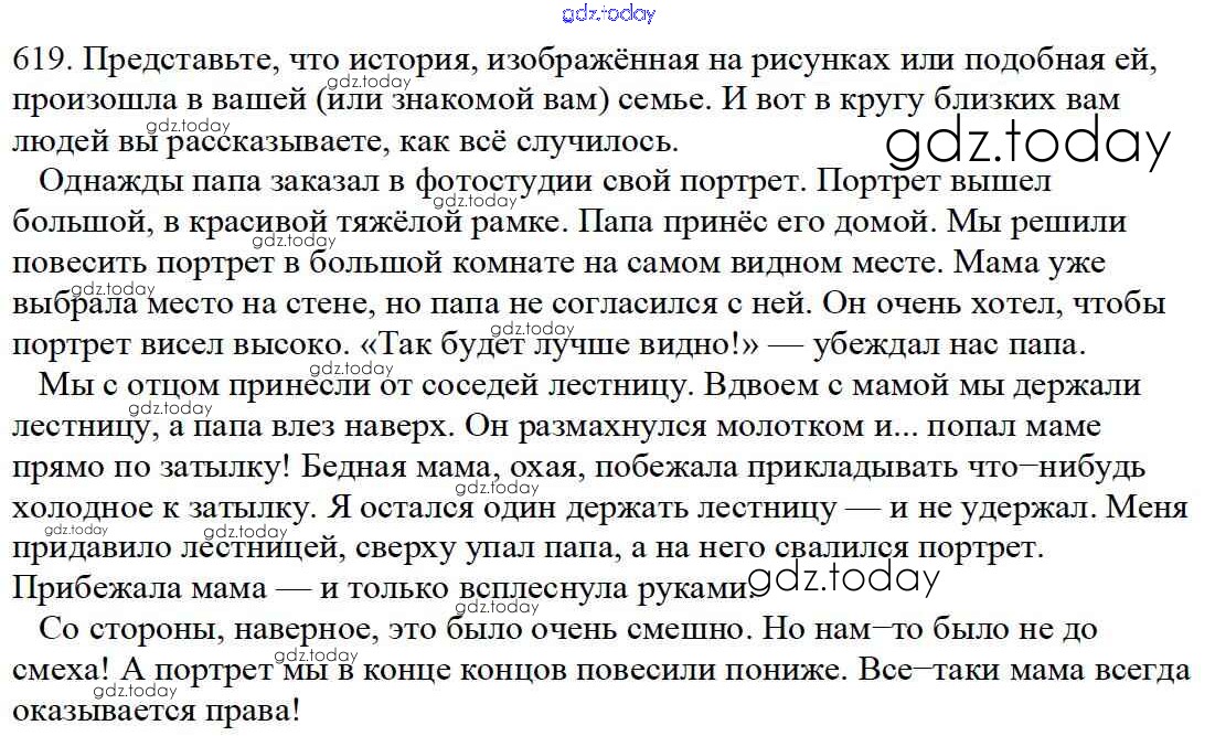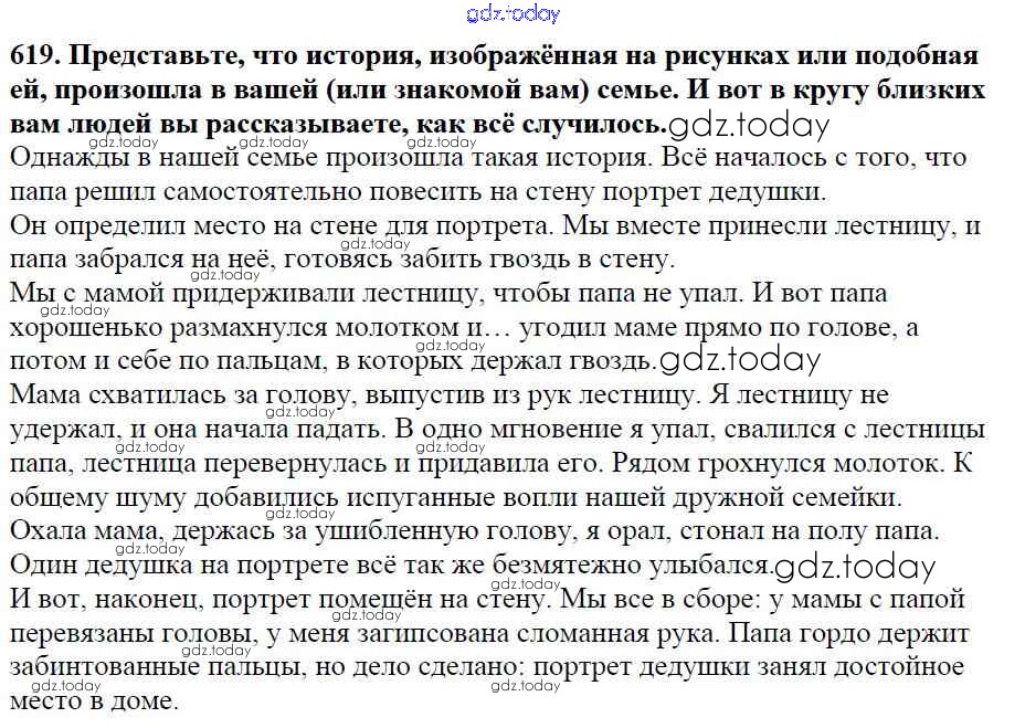 На страницах сайта gdz.today вы найдете учебный и вспомогательный материал, направленный на улучшения знаний школьной программы. ГДЗ - онлайн мир знаний Часть 2. Решение к упражнениям 619 Учебнику по Русскому языку для 5 класса Баранов, Ладыженская Просвещение, Просвещение 2016, 2019