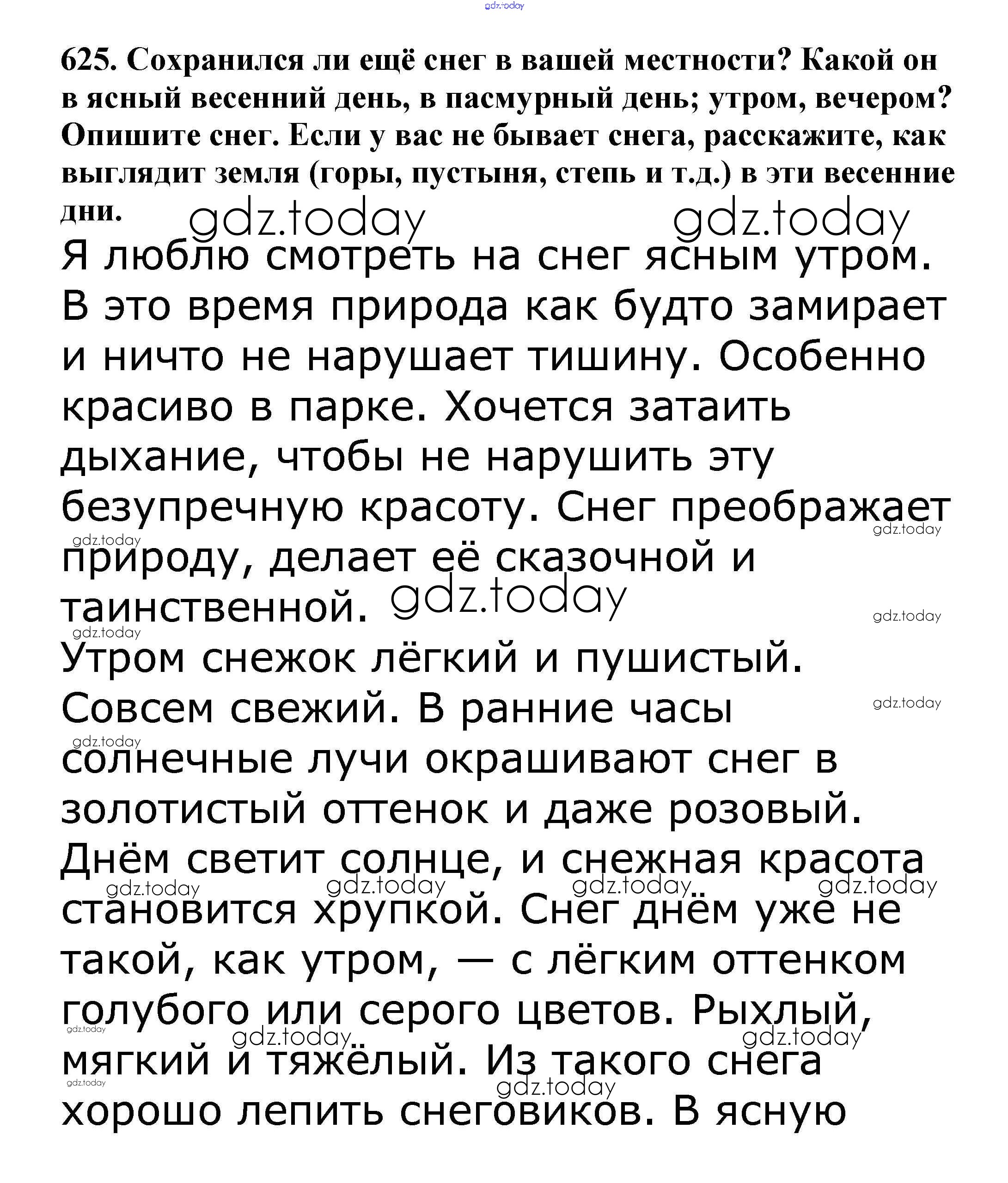 На страницах сайта gdz.today вы найдете учебный и вспомогательный материал, направленный на улучшения знаний школьной программы. ГДЗ - онлайн мир знаний Часть 2. Решение к упражнениям 625 Учебнику по Русскому языку для 5 класса Баранов, Ладыженская Просвещение, Просвещение 2016, 2019