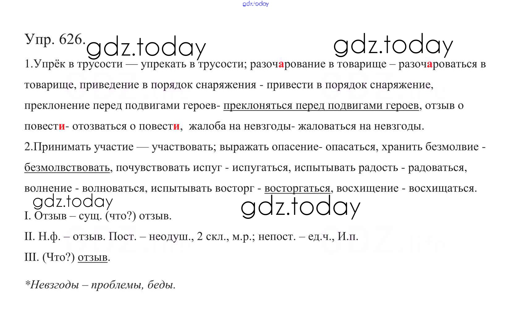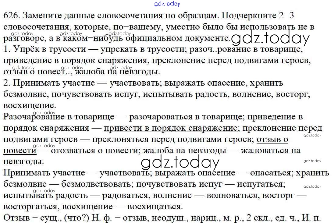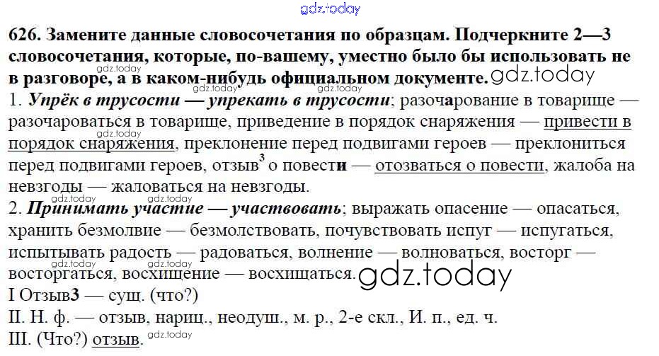 На страницах сайта gdz.today вы найдете учебный и вспомогательный материал, направленный на улучшения знаний школьной программы. ГДЗ - онлайн мир знаний Часть 2. Решение к упражнениям 626 Учебнику по Русскому языку для 5 класса Баранов, Ладыженская Просвещение, Просвещение 2016, 2019