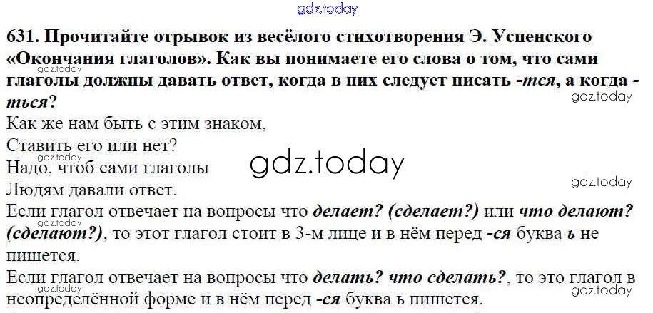 На страницах сайта gdz.today вы найдете учебный и вспомогательный материал, направленный на улучшения знаний школьной программы. ГДЗ - онлайн мир знаний Часть 2. Решение к упражнениям 631 Учебнику по Русскому языку для 5 класса Баранов, Ладыженская Просвещение, Просвещение 2016, 2019
