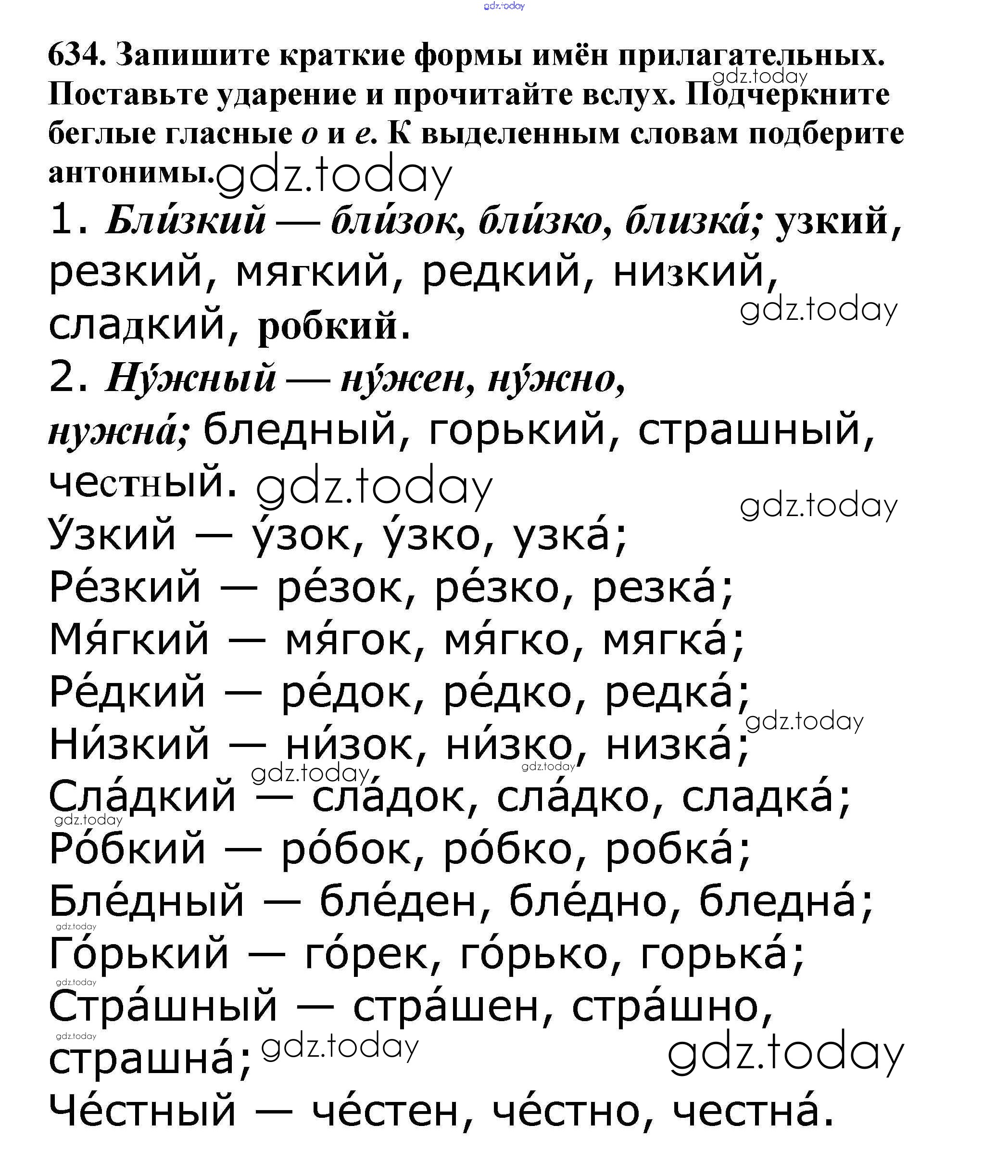 Ответы к Часть 2. Решение к упражнениям 634 Учебнику по Русскому языку для 5 класса Баранов, Ладыженская Просвещение, Просвещение 2016, 2019