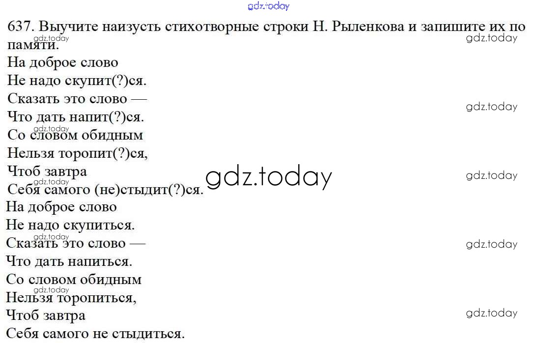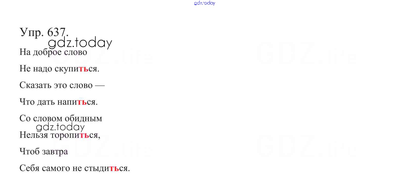 На страницах сайта gdz.today вы найдете учебный и вспомогательный материал, направленный на улучшения знаний школьной программы. ГДЗ - онлайн мир знаний Часть 2. Решение к упражнениям 637 Учебнику по Русскому языку для 5 класса Баранов, Ладыженская Просвещение, Просвещение 2016, 2019