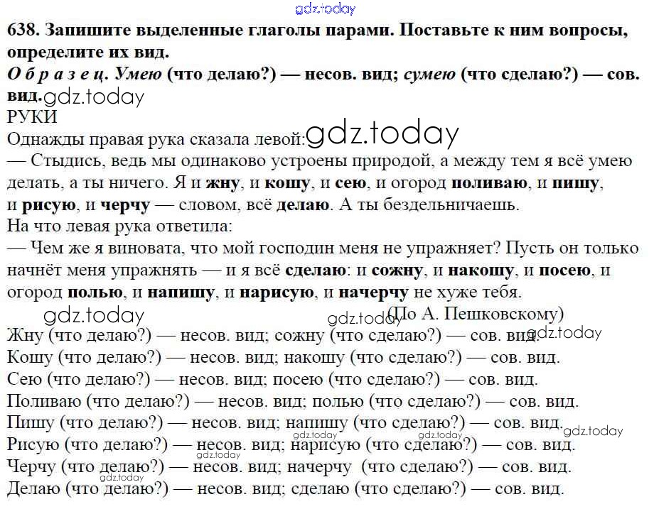 Ответы к Часть 2. Решение к упражнениям 638 Учебнику по Русскому языку для 5 класса Баранов, Ладыженская Просвещение, Просвещение 2016, 2019