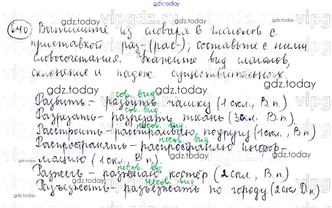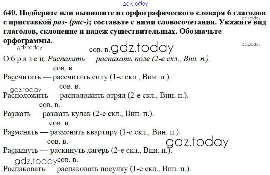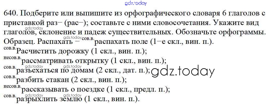На страницах сайта gdz.today вы найдете учебный и вспомогательный материал, направленный на улучшения знаний школьной программы. ГДЗ - онлайн мир знаний Часть 2. Решение к упражнениям 640 Учебнику по Русскому языку для 5 класса Баранов, Ладыженская Просвещение, Просвещение 2016, 2019