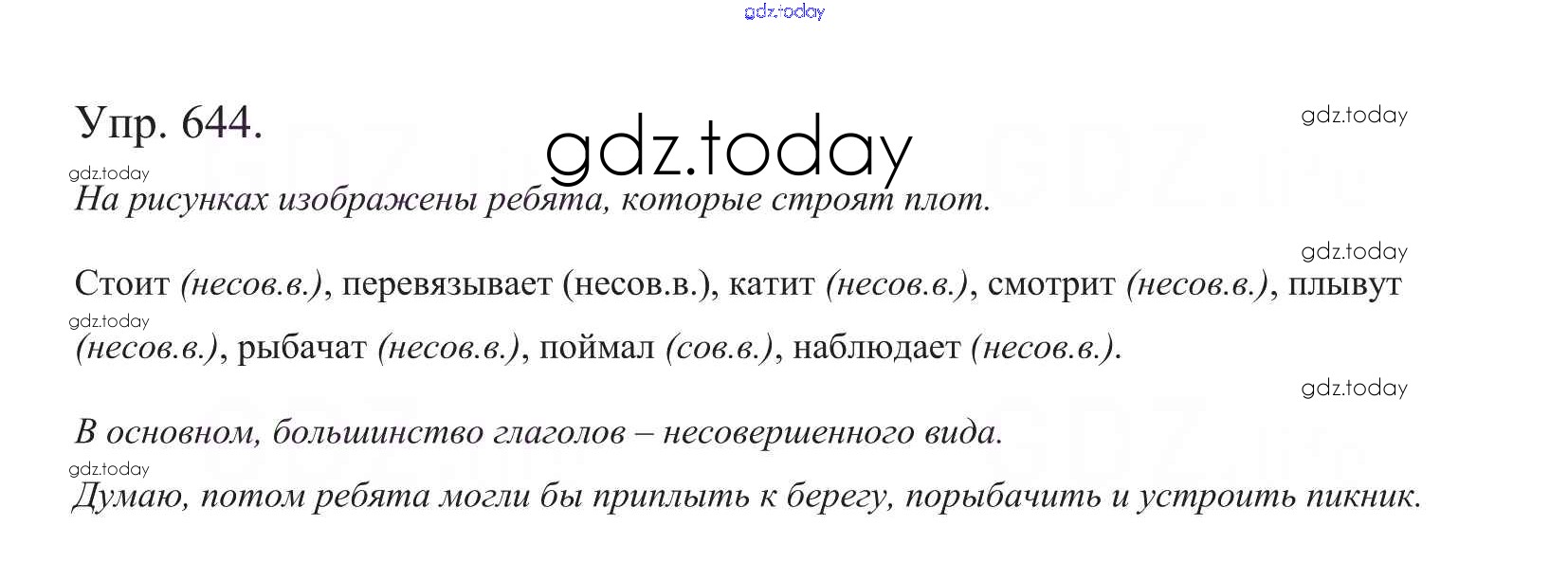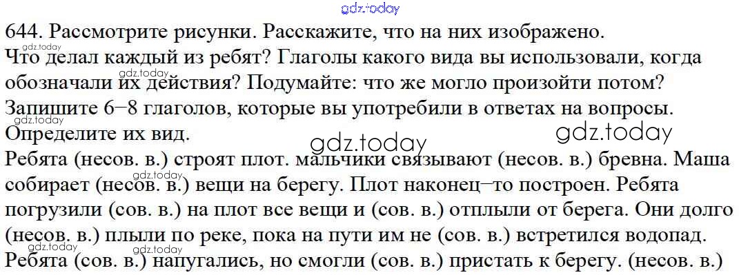 На страницах сайта gdz.today вы найдете учебный и вспомогательный материал, направленный на улучшения знаний школьной программы. ГДЗ - онлайн мир знаний Часть 2. Решение к упражнениям 644 Учебнику по Русскому языку для 5 класса Баранов, Ладыженская Просвещение, Просвещение 2016, 2019