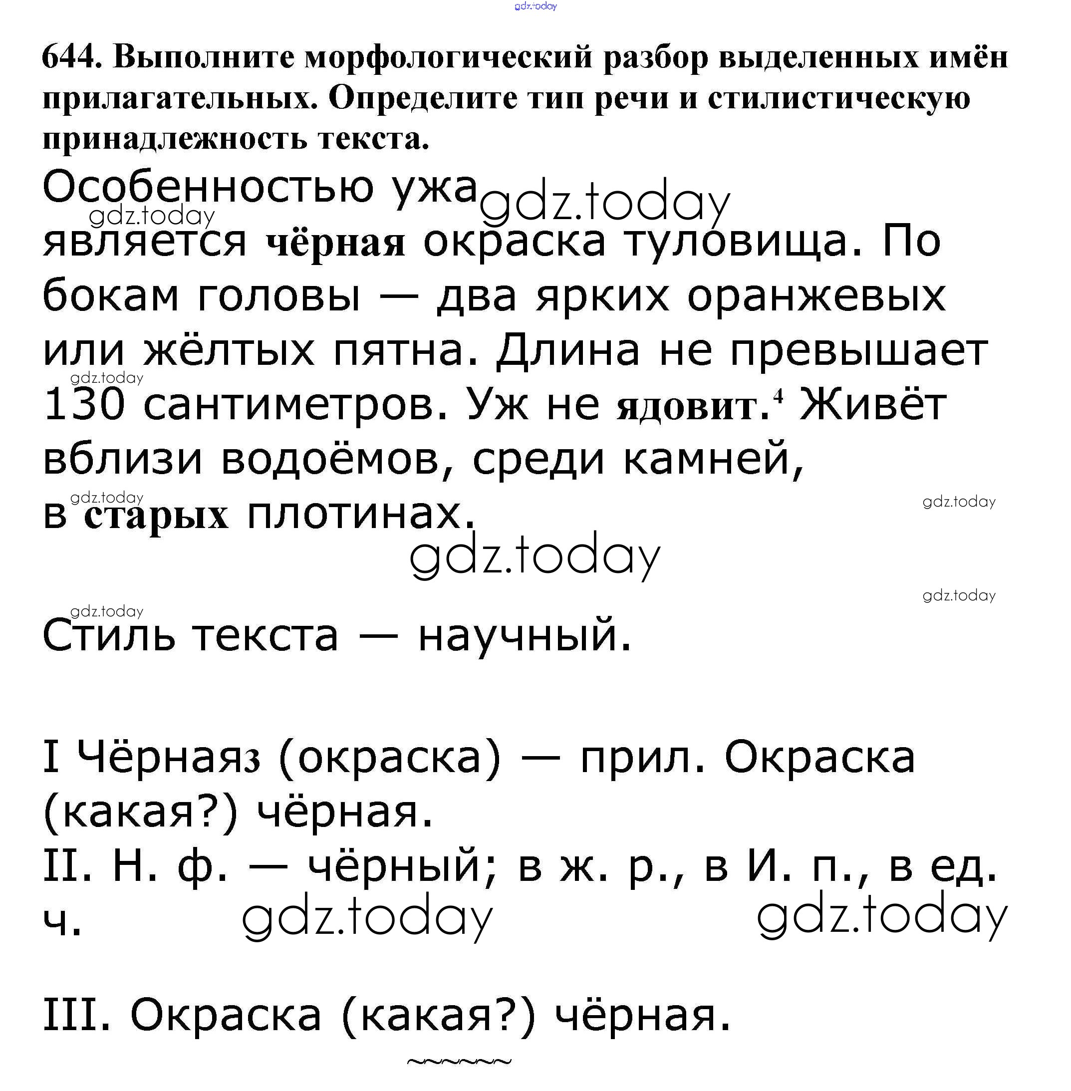Ответы к Часть 2. Решение к упражнениям 644 Учебнику по Русскому языку для 5 класса Баранов, Ладыженская Просвещение, Просвещение 2016, 2019