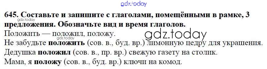 Ответы к Часть 2. Решение к упражнениям 645 Учебнику по Русскому языку для 5 класса Баранов, Ладыженская Просвещение, Просвещение 2016, 2019