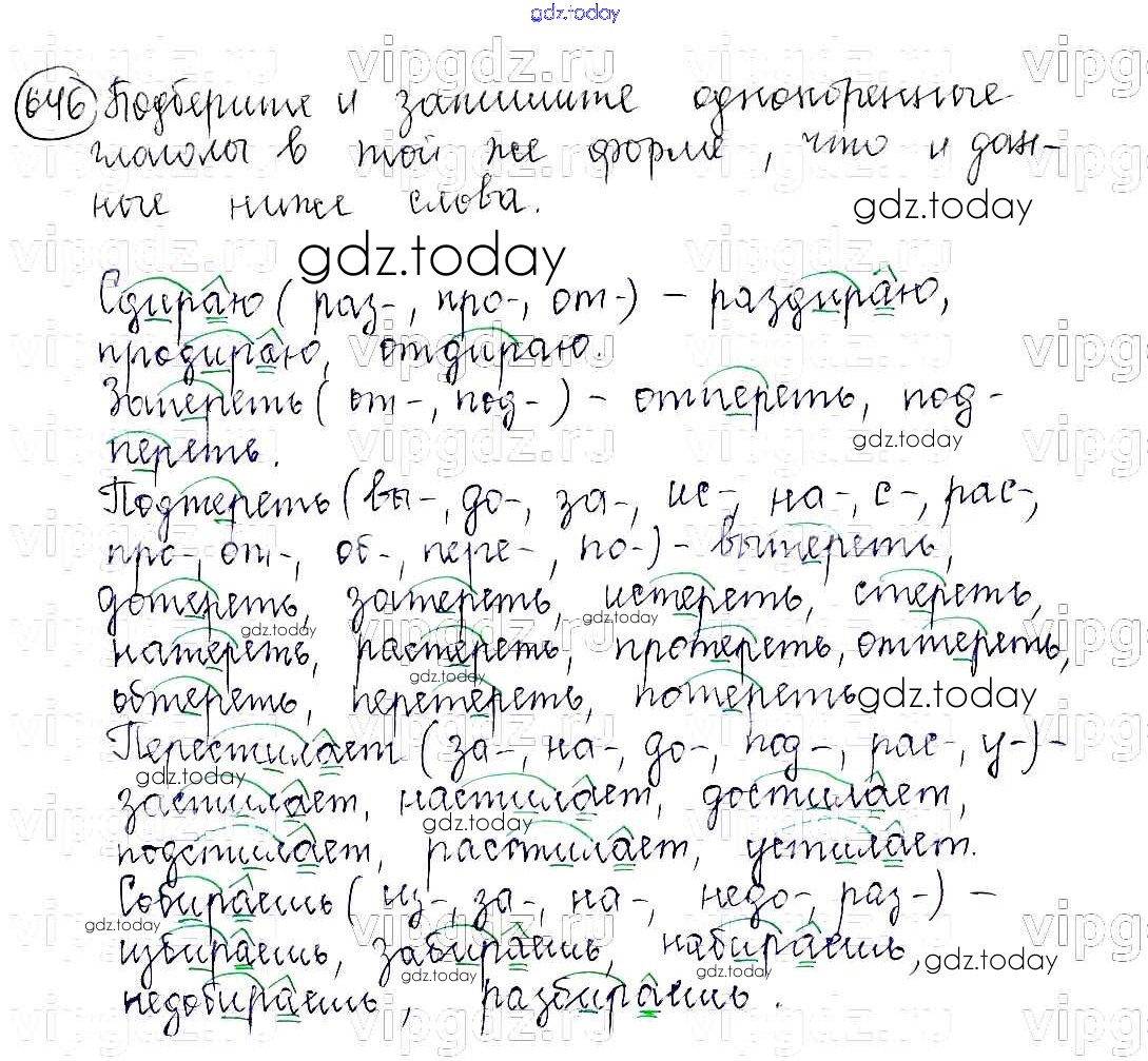 На страницах сайта gdz.today вы найдете учебный и вспомогательный материал, направленный на улучшения знаний школьной программы. ГДЗ - онлайн мир знаний Часть 2. Решение к упражнениям 646 Учебнику по Русскому языку для 5 класса Баранов, Ладыженская Просвещение, Просвещение 2016, 2019