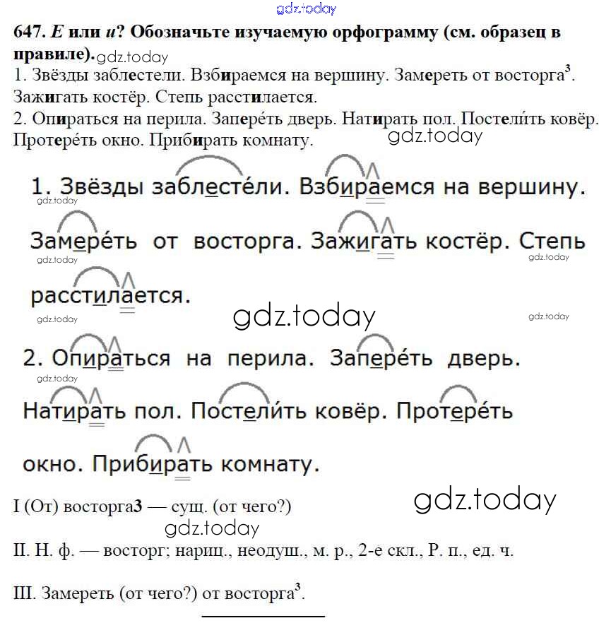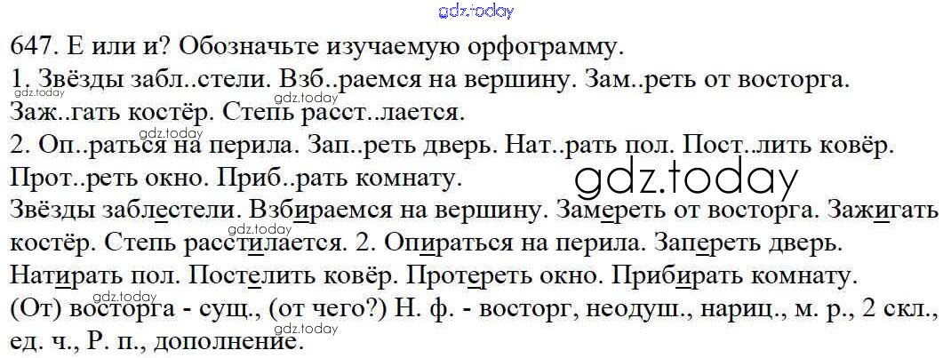 Ответы к Часть 2. Решение к упражнениям 647 Учебнику по Русскому языку для 5 класса Баранов, Ладыженская Просвещение, Просвещение 2016, 2019