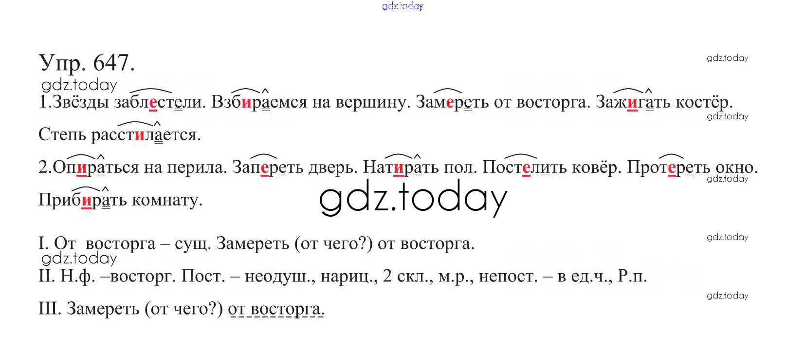 На страницах сайта gdz.today вы найдете учебный и вспомогательный материал, направленный на улучшения знаний школьной программы. ГДЗ - онлайн мир знаний Часть 2. Решение к упражнениям 647 Учебнику по Русскому языку для 5 класса Баранов, Ладыженская Просвещение, Просвещение 2016, 2019