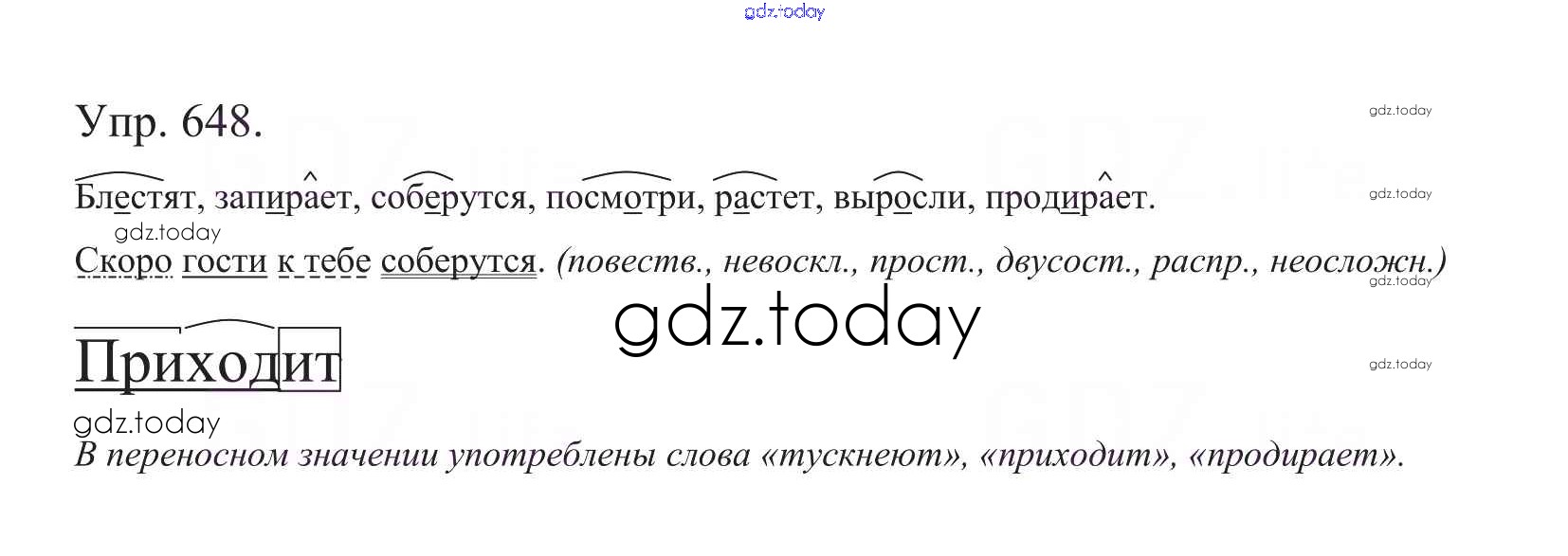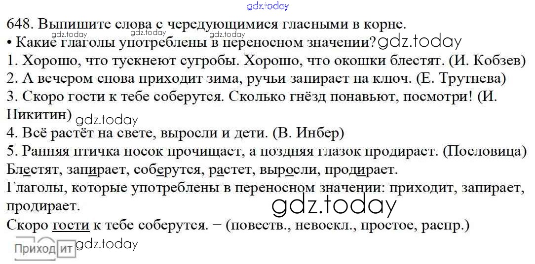 На страницах сайта gdz.today вы найдете учебный и вспомогательный материал, направленный на улучшения знаний школьной программы. ГДЗ - онлайн мир знаний Часть 2. Решение к упражнениям 648 Учебнику по Русскому языку для 5 класса Баранов, Ладыженская Просвещение, Просвещение 2016, 2019