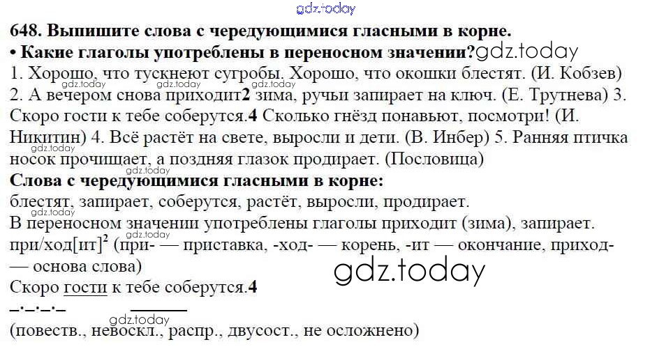Ответы к Часть 2. Решение к упражнениям 648 Учебнику по Русскому языку для 5 класса Баранов, Ладыженская Просвещение, Просвещение 2016, 2019