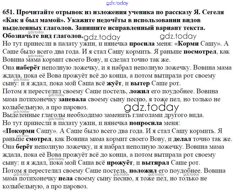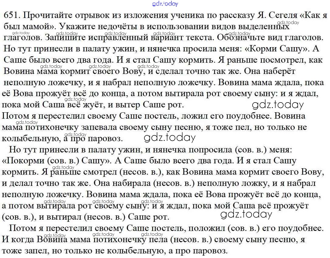 Ответы к Часть 2. Решение к упражнениям 651 Учебнику по Русскому языку для 5 класса Баранов, Ладыженская Просвещение, Просвещение 2016, 2019