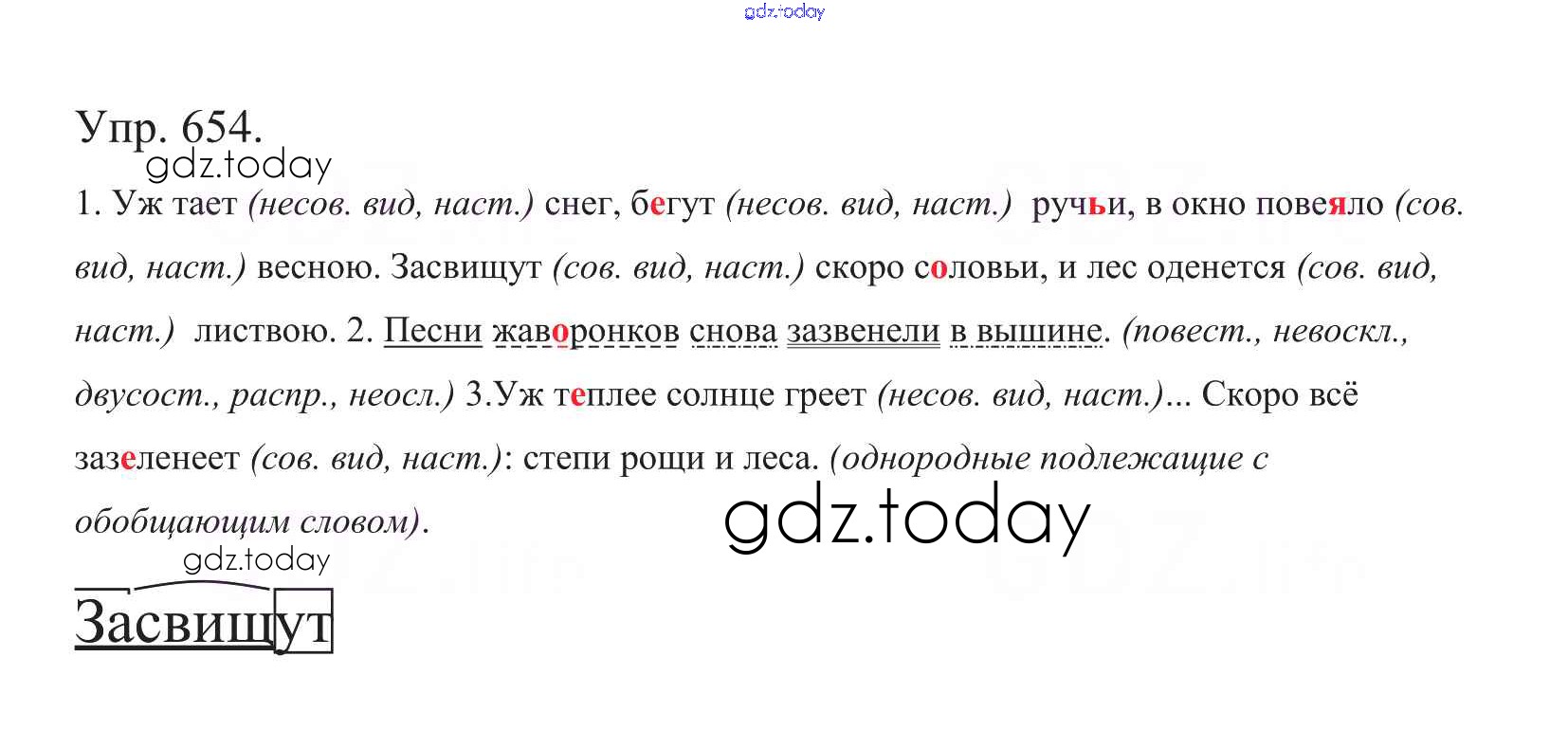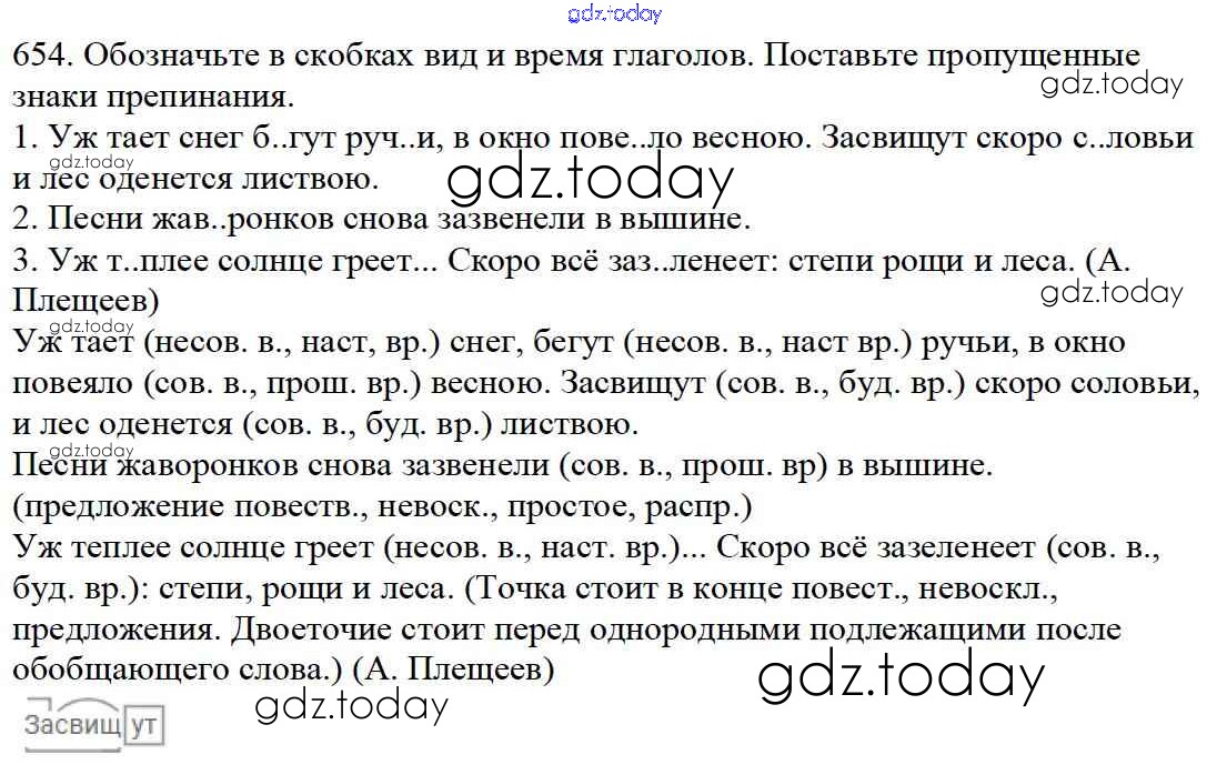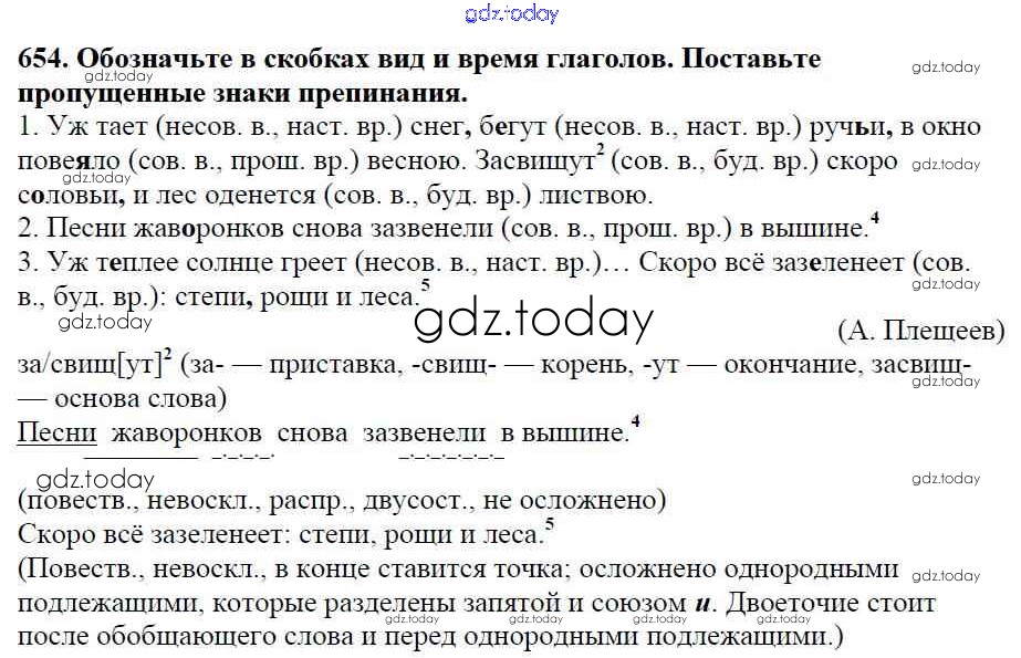 Ответы к Часть 2. Решение к упражнениям 654 Учебнику по Русскому языку для 5 класса Баранов, Ладыженская Просвещение, Просвещение 2016, 2019