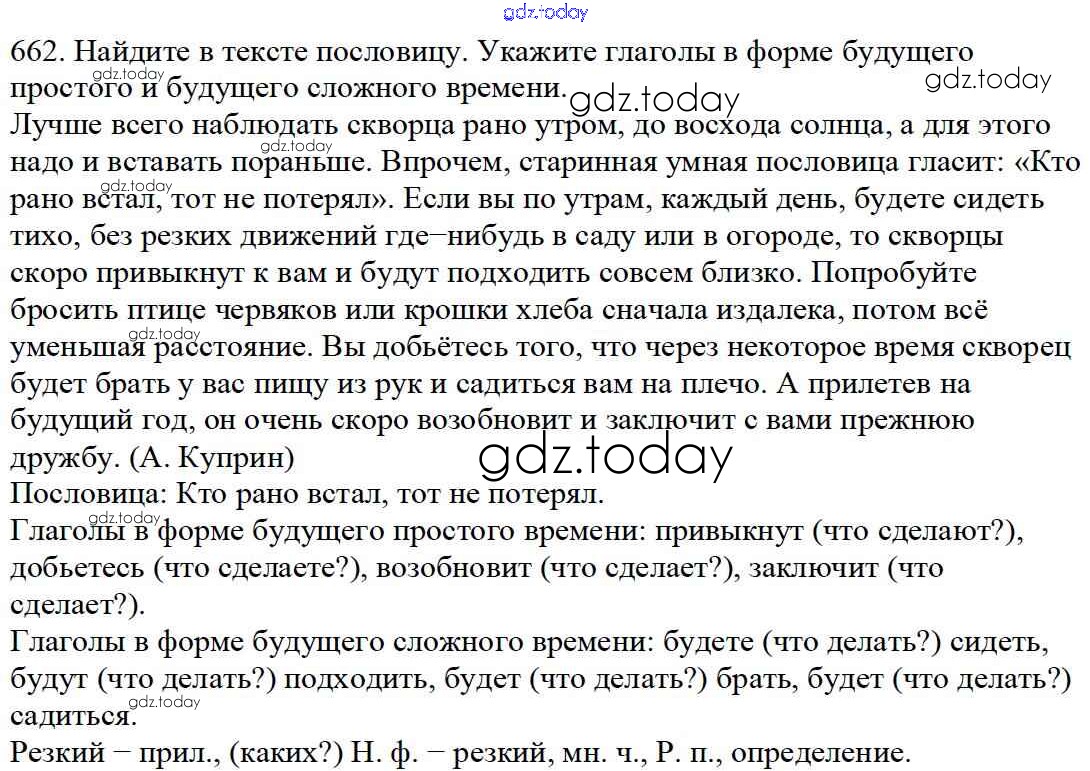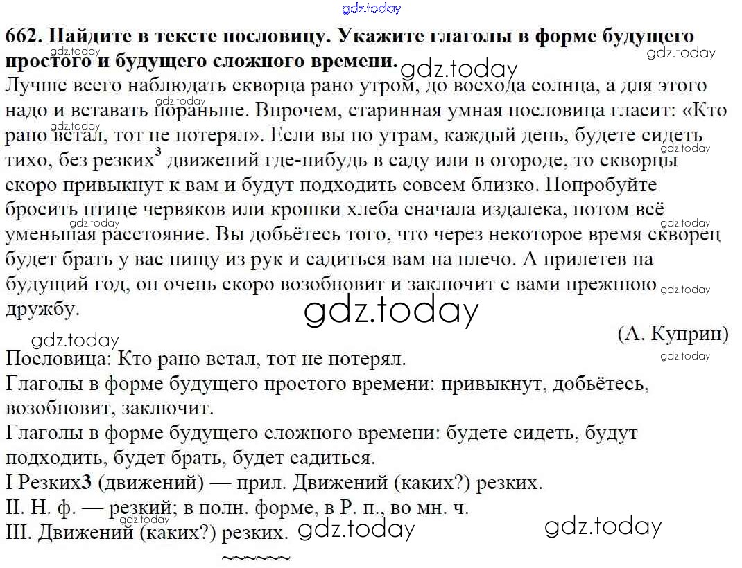 Ответы к Часть 2. Решение к упражнениям 662 Учебнику по Русскому языку для 5 класса Баранов, Ладыженская Просвещение, Просвещение 2016, 2019