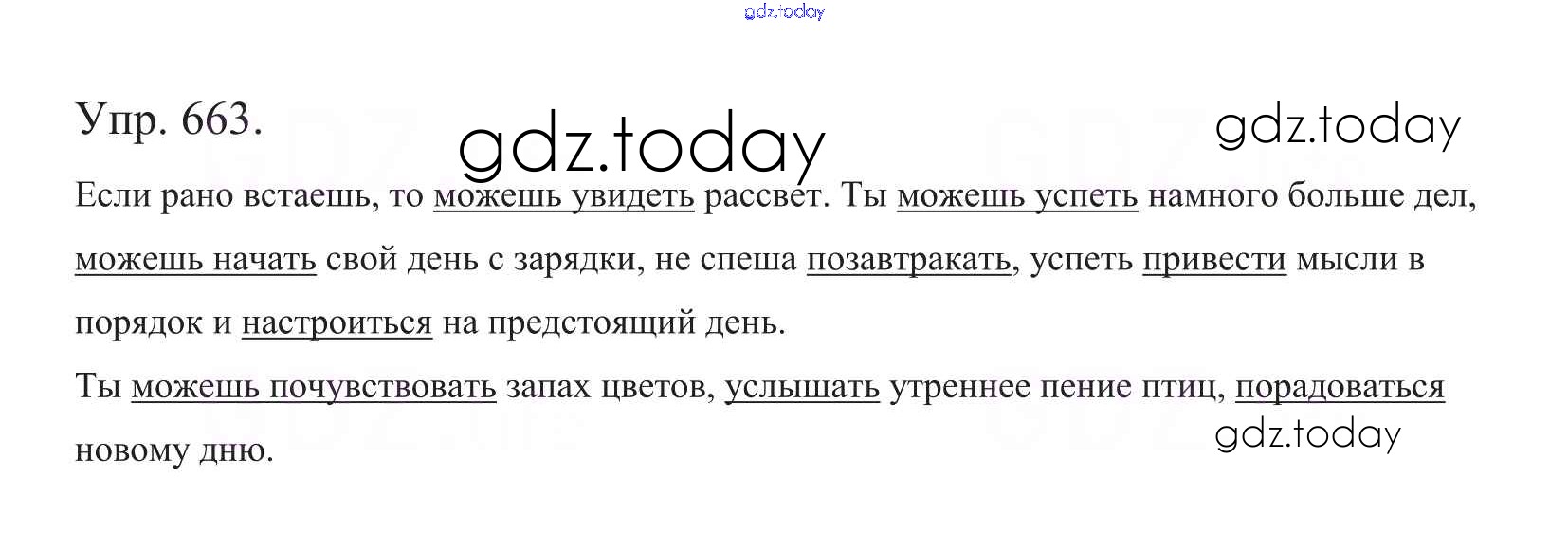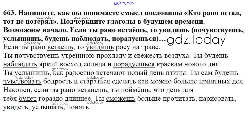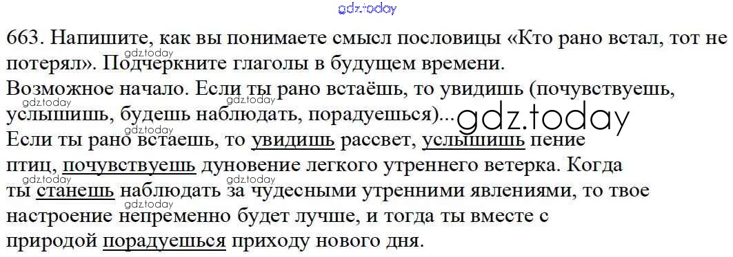 На страницах сайта gdz.today вы найдете учебный и вспомогательный материал, направленный на улучшения знаний школьной программы. ГДЗ - онлайн мир знаний Часть 2. Решение к упражнениям 663 Учебнику по Русскому языку для 5 класса Баранов, Ладыженская Просвещение, Просвещение 2016, 2019