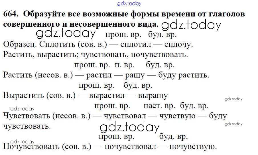 На страницах сайта gdz.today вы найдете учебный и вспомогательный материал, направленный на улучшения знаний школьной программы. ГДЗ - онлайн мир знаний Часть 2. Решение к упражнениям 664 Учебнику по Русскому языку для 5 класса Баранов, Ладыженская Просвещение, Просвещение 2016, 2019