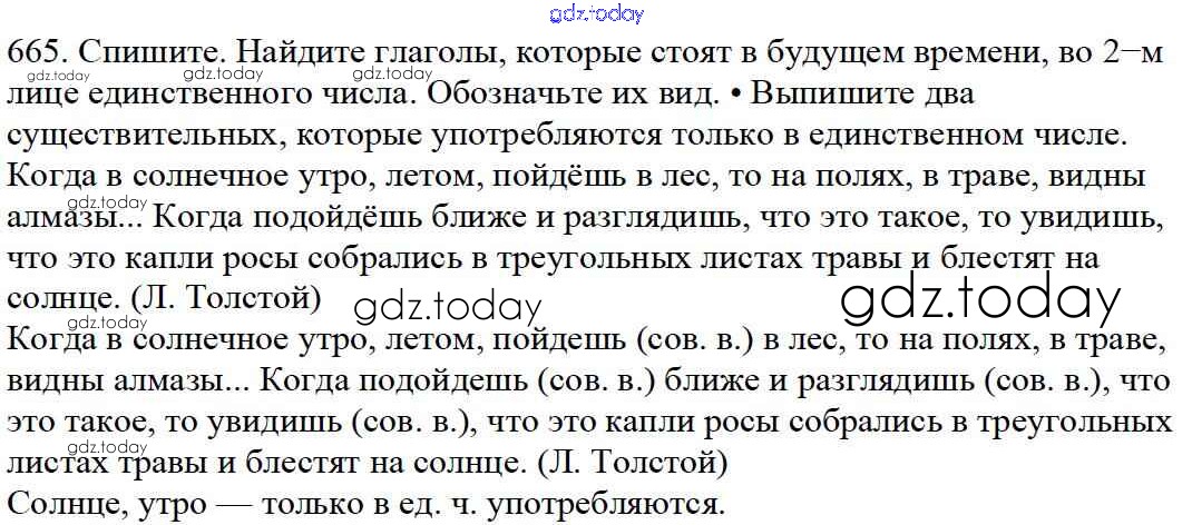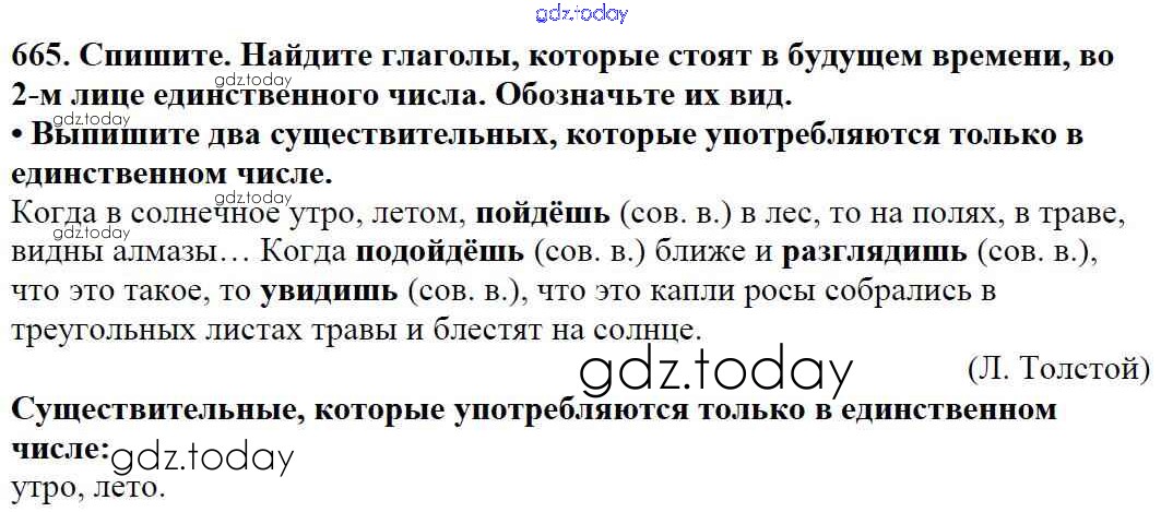 На страницах сайта gdz.today вы найдете учебный и вспомогательный материал, направленный на улучшения знаний школьной программы. ГДЗ - онлайн мир знаний Часть 2. Решение к упражнениям 665 Учебнику по Русскому языку для 5 класса Баранов, Ладыженская Просвещение, Просвещение 2016, 2019