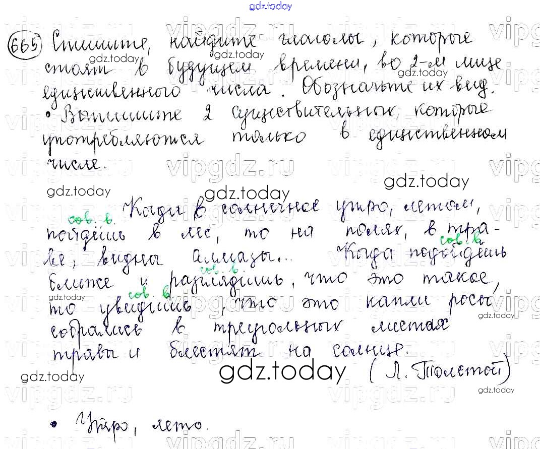 Ответы к Часть 2. Решение к упражнениям 665 Учебнику по Русскому языку для 5 класса Баранов, Ладыженская Просвещение, Просвещение 2016, 2019