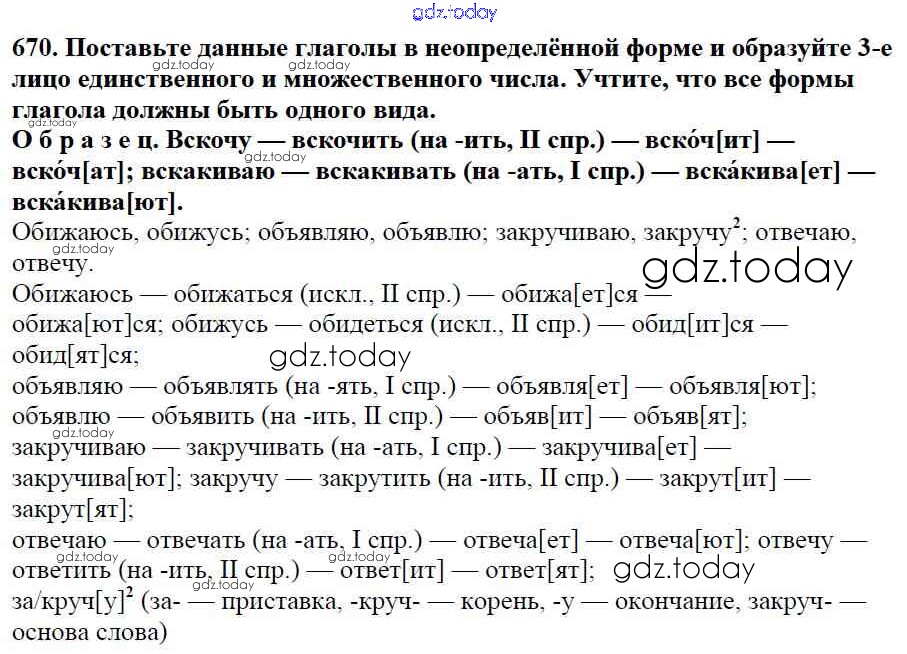 Ответы к Часть 2. Решение к упражнениям 670 Учебнику по Русскому языку для 5 класса Баранов, Ладыженская Просвещение, Просвещение 2016, 2019