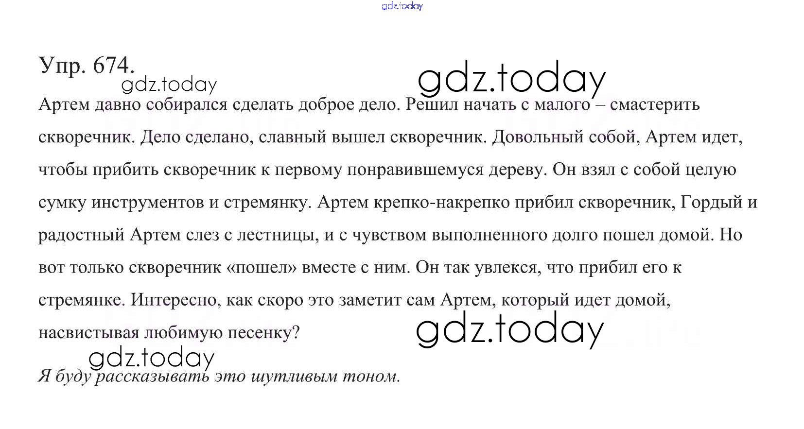 На страницах сайта gdz.today вы найдете учебный и вспомогательный материал, направленный на улучшения знаний школьной программы. ГДЗ - онлайн мир знаний Часть 2. Решение к упражнениям 674 Учебнику по Русскому языку для 5 класса Баранов, Ладыженская Просвещение, Просвещение 2016, 2019