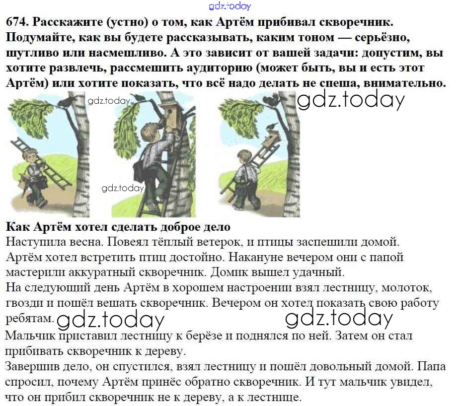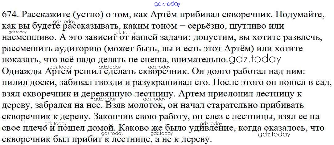 Ответы к Часть 2. Решение к упражнениям 674 Учебнику по Русскому языку для 5 класса Баранов, Ладыженская Просвещение, Просвещение 2016, 2019