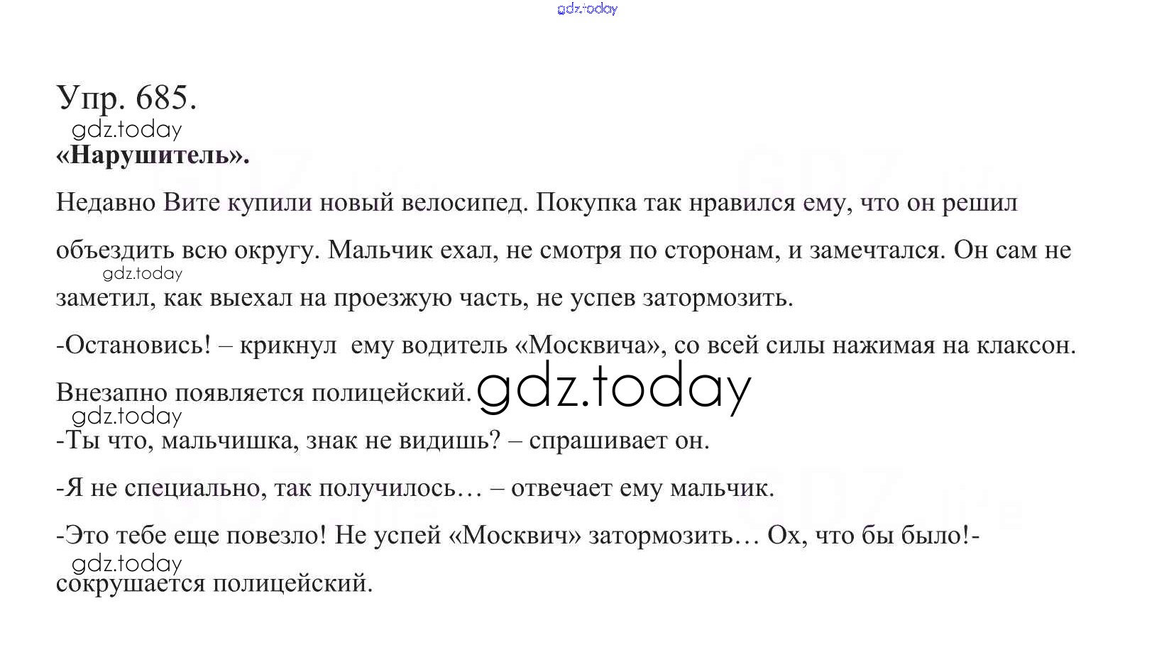 На страницах сайта gdz.today вы найдете учебный и вспомогательный материал, направленный на улучшения знаний школьной программы. ГДЗ - онлайн мир знаний Часть 2. Решение к упражнениям 685 Учебнику по Русскому языку для 5 класса Баранов, Ладыженская Просвещение, Просвещение 2016, 2019