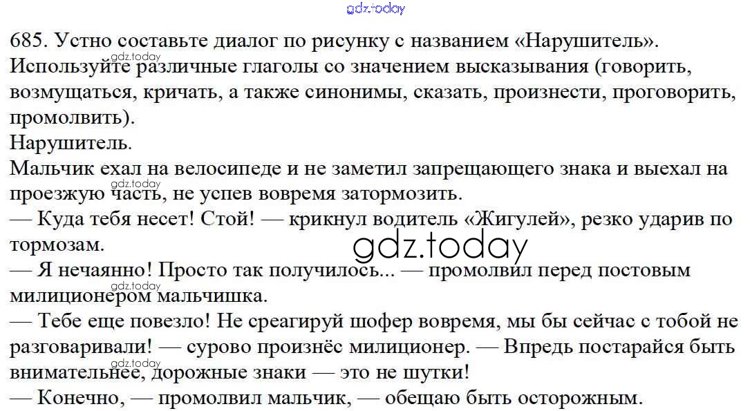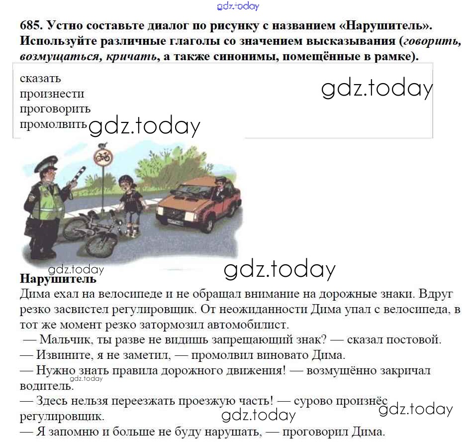 Ответы к Часть 2. Решение к упражнениям 685 Учебнику по Русскому языку для 5 класса Баранов, Ладыженская Просвещение, Просвещение 2016, 2019