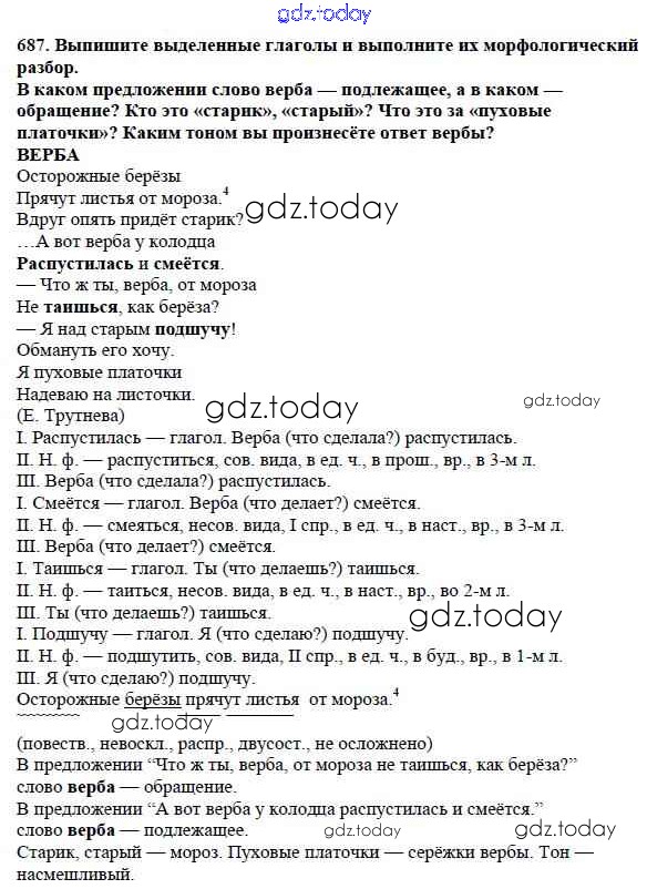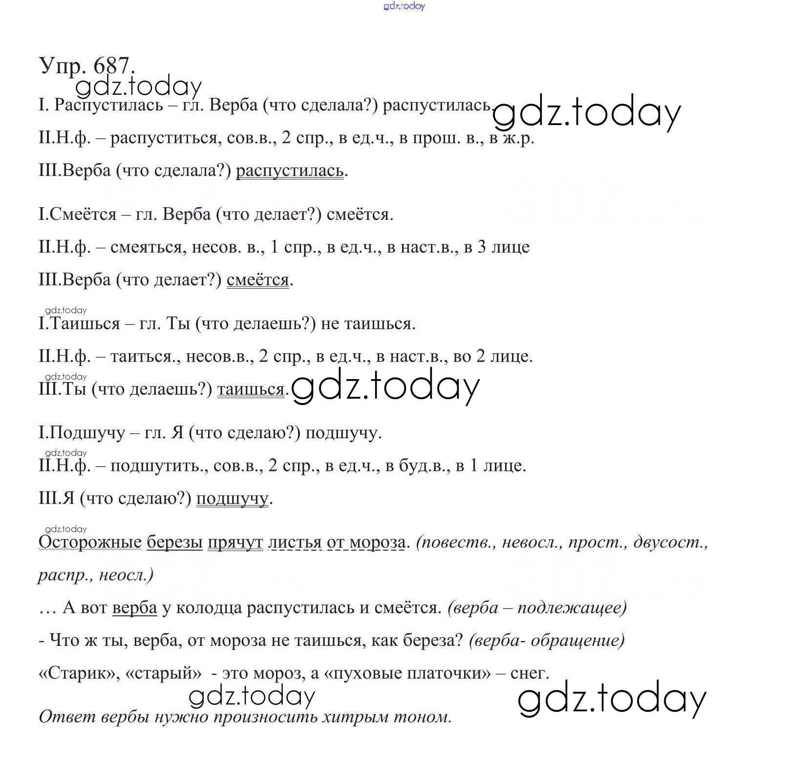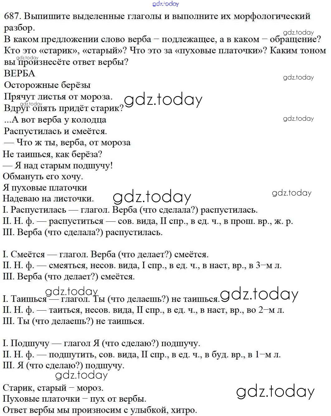 Ответы к Часть 2. Решение к упражнениям 687 Учебнику по Русскому языку для 5 класса Баранов, Ладыженская Просвещение, Просвещение 2016, 2019