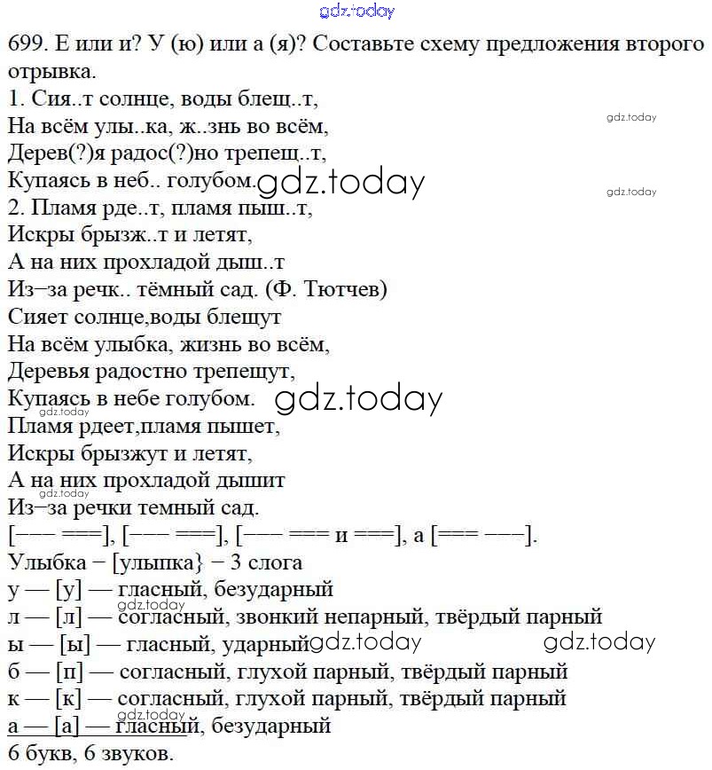 На страницах сайта gdz.today вы найдете учебный и вспомогательный материал, направленный на улучшения знаний школьной программы. ГДЗ - онлайн мир знаний Часть 2. Решение к упражнениям 699 Учебнику по Русскому языку для 5 класса Баранов, Ладыженская Просвещение, Просвещение 2016, 2019